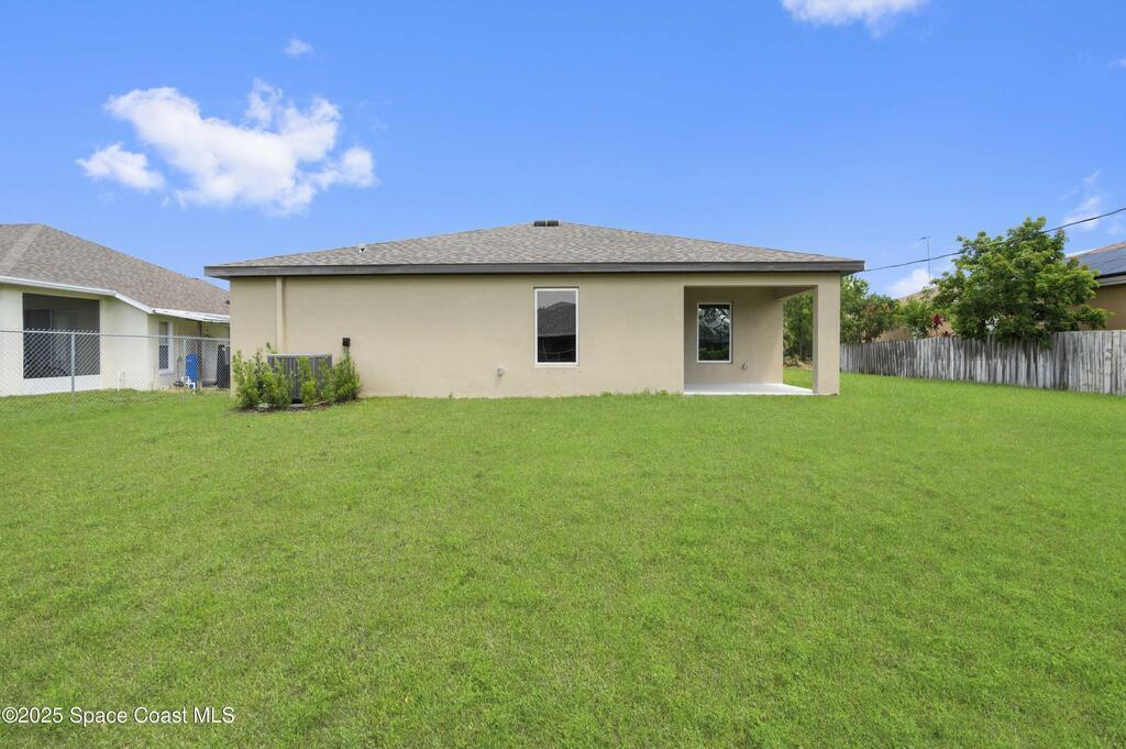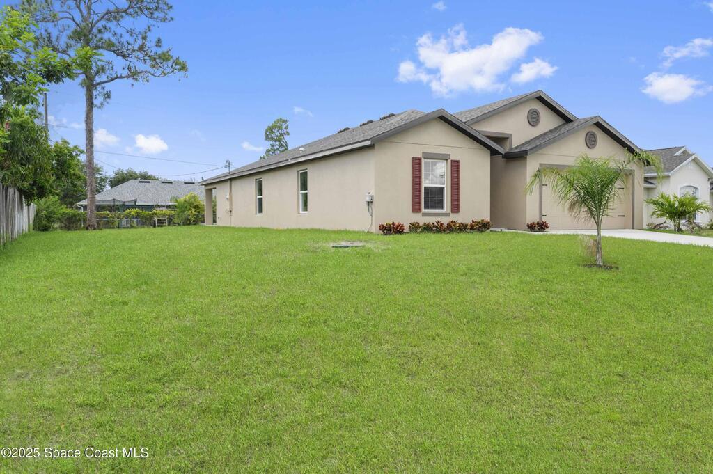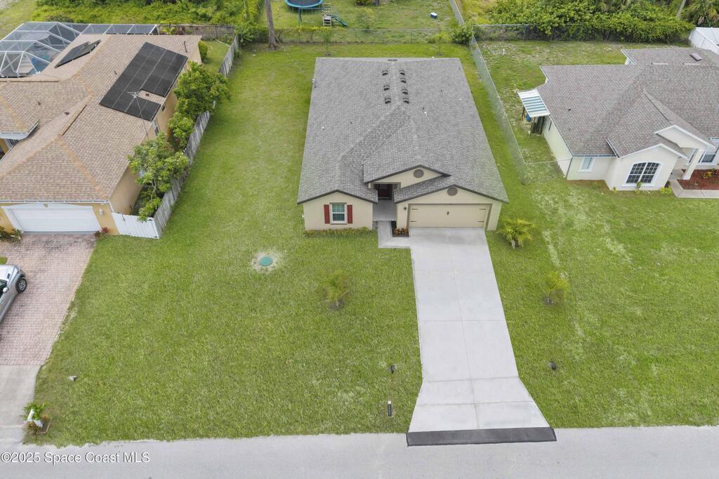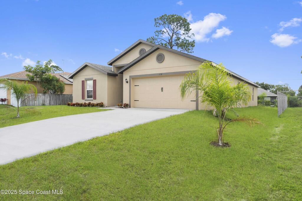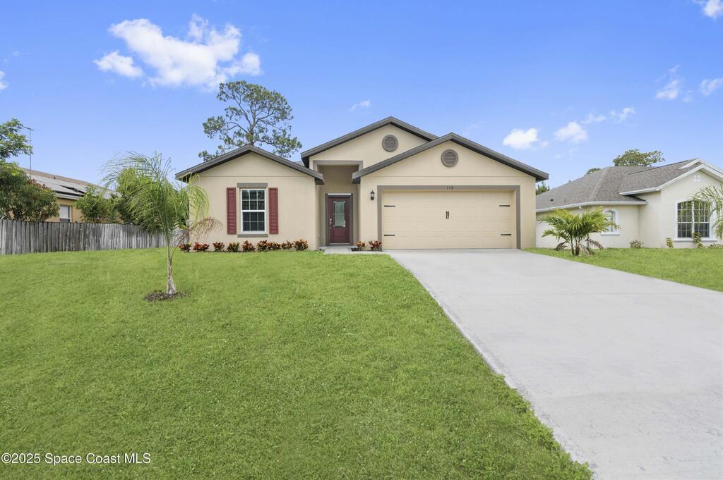 Ask us about our incentives, builder paid closing costs, & no down payment options! This one-story home features an open-concept floor plan, 5 bedrooms and 3 full baths complete with over $10, 000 in upgrades. including energy-efficient Whilrpool(r) appliances, sprawling granite countertops in the kitchen, beautiful wood cabinets, brushed nickel hardware and an attached two-car garage! Located within the highly sought-after area of Palm Bay, the Capri is more than move in ready. This home also consists of a covered back patio, front yard landscaping and a master suite complete with a massive walk-in closet. Best of all, this location offers residents a premier location with convenient access to nearby shopping, golf courses, world-class area beaches and amenity-packed parks. This home is conveniently located within walking distance from Bayside Highschool and close to Bayside Shopping Center. All neighboring homes have fencing up. **appliance models are subject to availability**