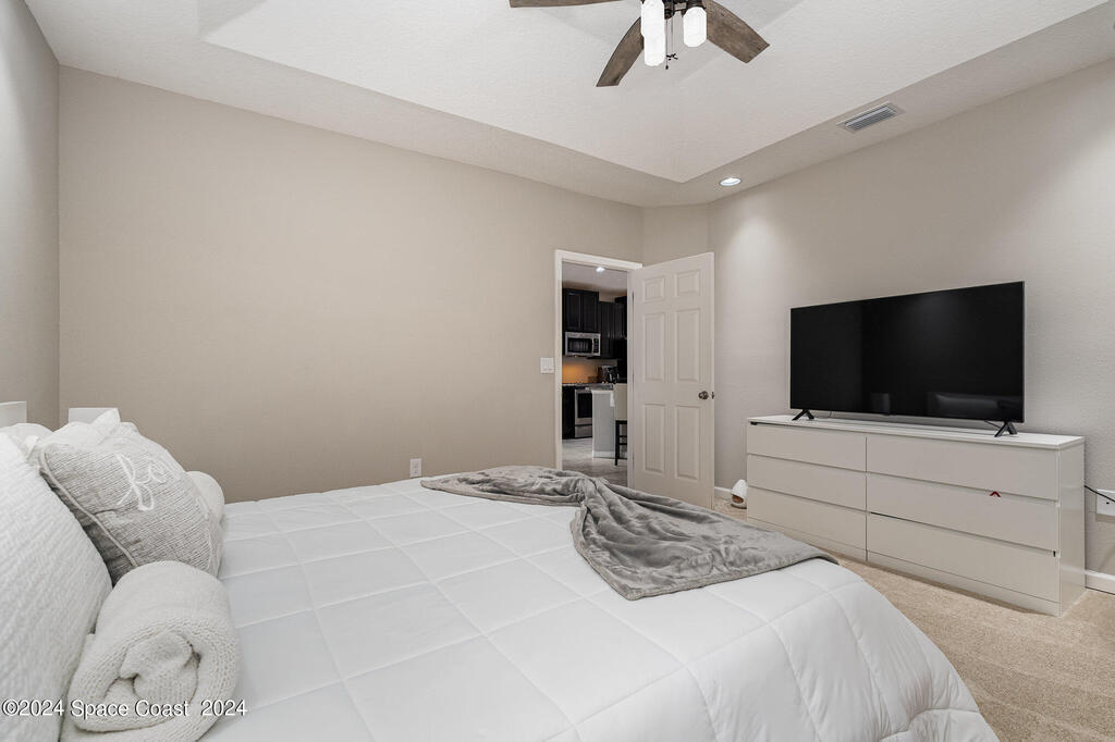 Welcome to this beautifully maintained 4-bedroom, 2-bath home, situated in the desirable neighborhood of Harvest Cove. Conveniently located near US-1 and I-95, and just minutes away from everything you could need--including restaurants, shopping centers, and Starbucks. This home offers unparalleled accessibility. Step inside to discover a thoughtfully designed living space featuring extended granite countertops, ceramic tile flooring, and cozy carpeted bedrooms with ample closet space. The home's welcoming atmosphere is enhanced by a stunning crystalline glass front door and energy-efficient features throughout. Enjoy the outdoors in your private, screened-in back porch, and take advantage of the fully fenced-in yard. Perfect for relaxation and entertaining. The property also boasts a charming brick paver driveway and a meticulously maintained lawn. This home seamlessly combines modern amenities with classic charm! Schedule your showing today!