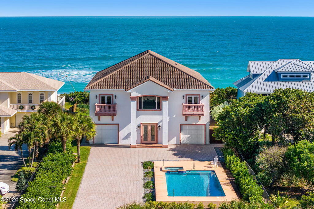 A rare combination of a very limited, deep Oceanfront property with an absolute bunker of a larger home. Built in 2008 from solid poured concrete on pilings with newer impact windows (2021) and a large pool, the views from this over 5, 300 liv sq ft home and it's extra large covered balconies will never get old ! Loads of storage, a private elevator, high end water system, Icenyne insulation, massive amounts of storage & so much more to enjoy with this custom, Oceanfront gem !