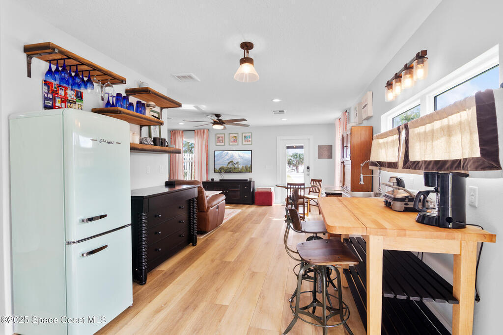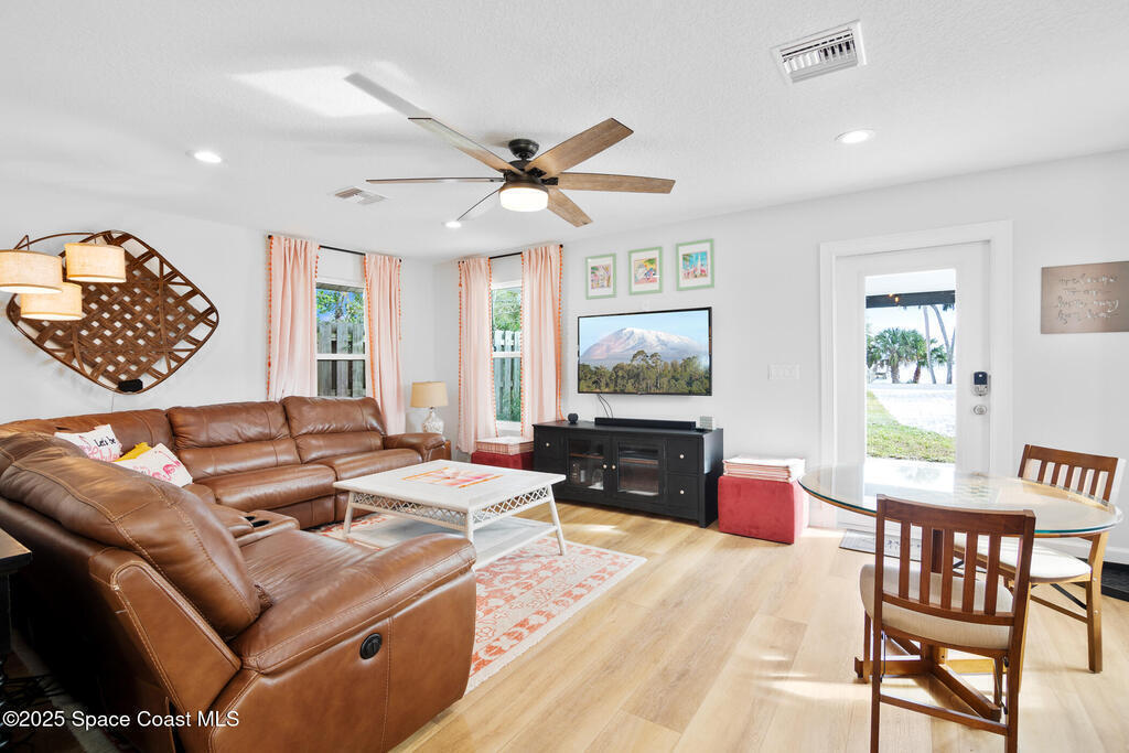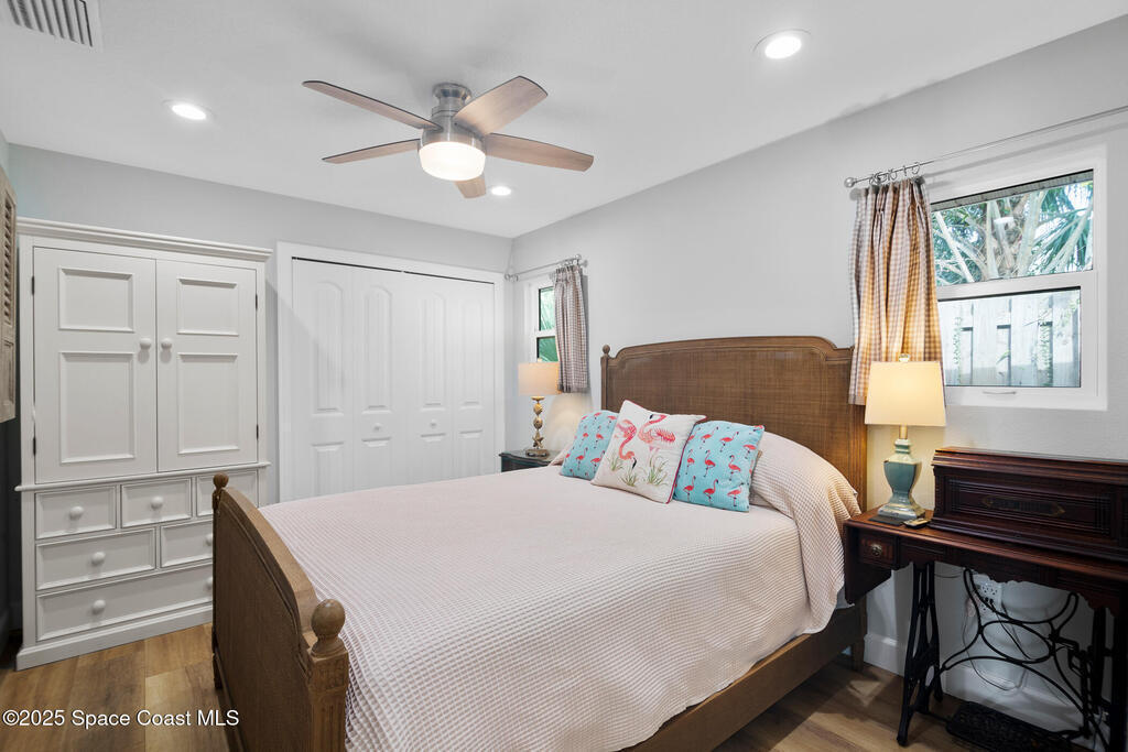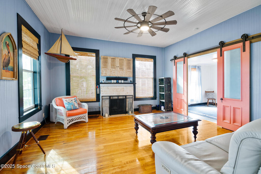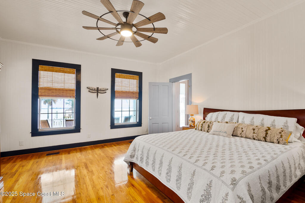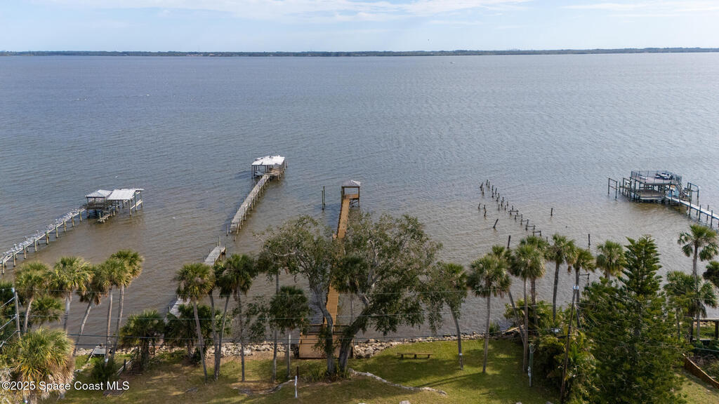 *Great Income Opportunity* A lovingly restored and updated antique 1890's Indian River residence with magnificent Merritt Island pine hardwood floors and original wood features situated on a large (.75 acre) lot. The main home (2 bed/1 bath) has been updated with new bathroom, hurricane rated windows, new Hardi(tm) Board siding, new insulation, new septic, and a working fireplace. The newly remodeled detached guest cottage (2 bed/1 bath) makes a perfect in-law, guest suite or Airbnb. Both homes enjoy river views with a 200' dock with large deck sitting area is pre-wired for a boat lift. Enjoy the charm of an antique cottage on the river that's been updated and restored throughout with additional guest space and a front row seat to rocket launches. These old Florida homes on the water don't come up often!