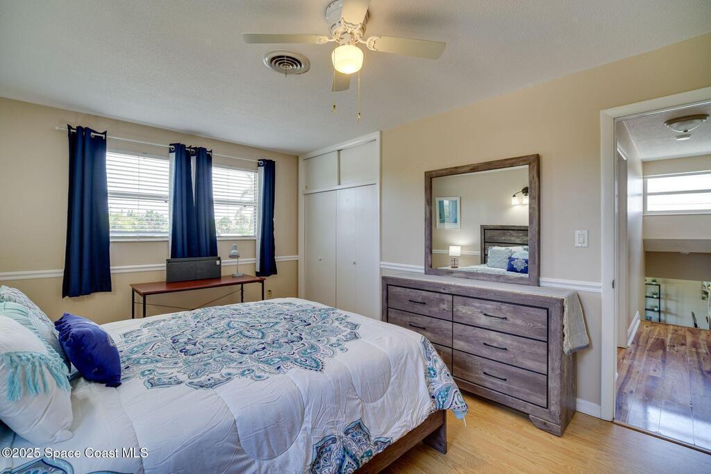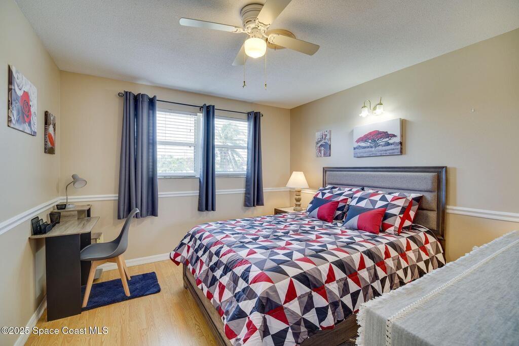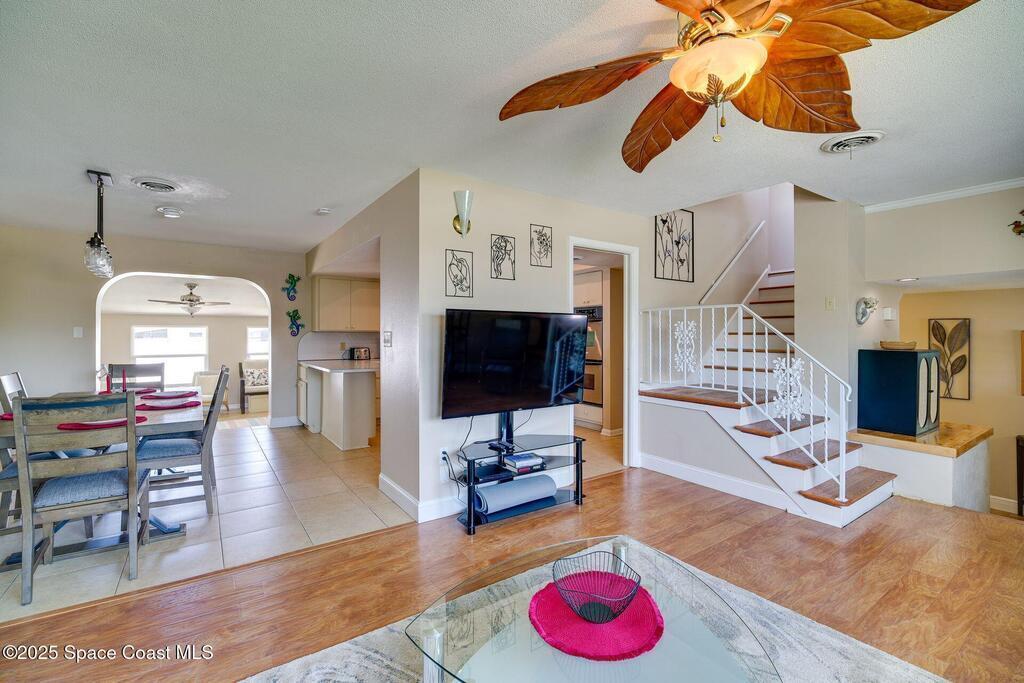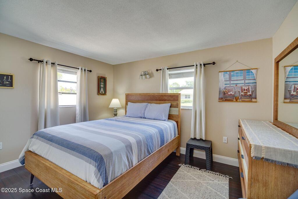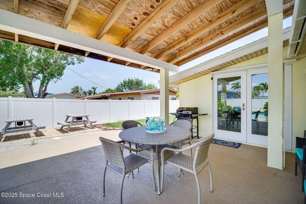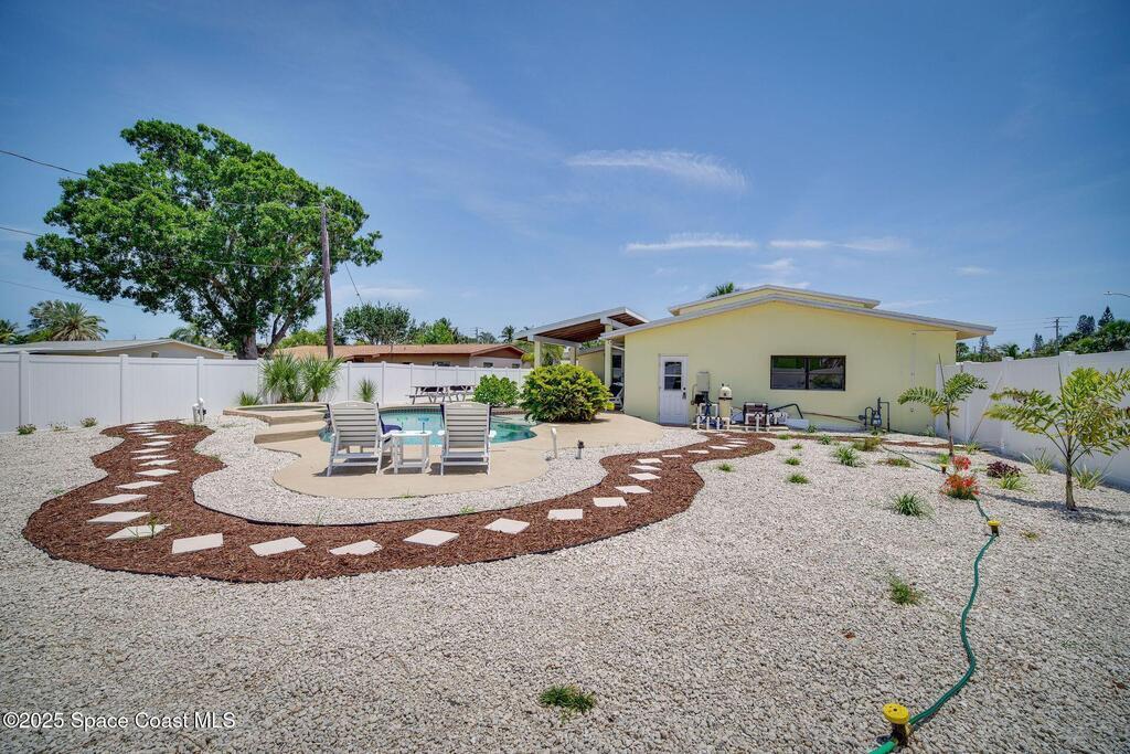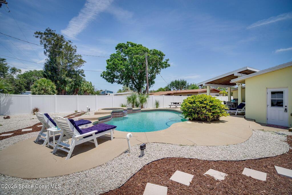 Make this this expansive 5-bedroom, 3-bathroom your perfect Florida escape! With a gas heated pool & spa and a large privacy fenced yard, this beautiful home on a corner lot has everything you need to enjoy the coastal sunshine. The large covered rear patio offers plenty of space for outdoor entertaining. This split level home has 2 bedrooms and a tiled shower bath & laundry room with an exterior door to the backyard. Step up to the spacious living & dining rooms that flow into a breakfast bar kitchen. The kitchen features lots of cabinetry, a flat cooktop, stainless steel double ovens & fridge. The sunny, huge Florida room has glass French doors leading to the pool. The third level provides two more bedrooms, a retro mint tiled tub with shower guest bath, and the primary bedroom featuring a walk-in closet & listello tiled shower ensuite. Leased solar panel keep your electric bill down. NEW AC Feb 2025. Currently used as a ST rental. All furniture is negotiable. 11 month income $85K+