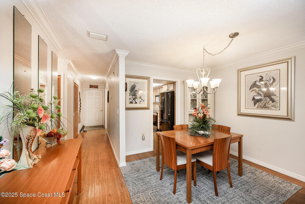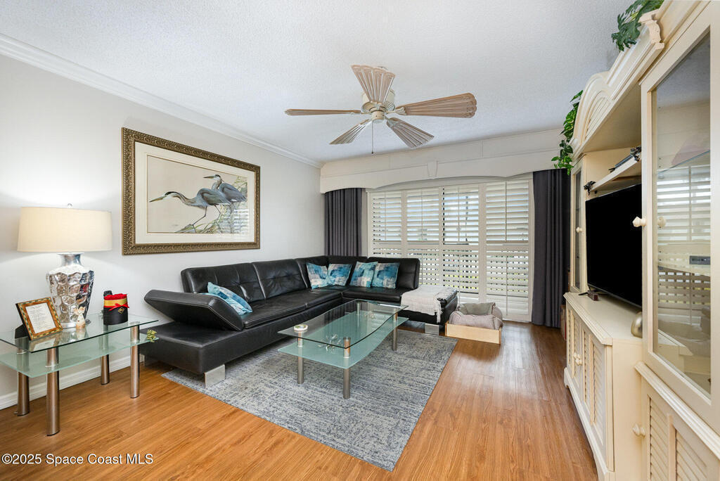 Welcome to Costa Del Sol River Front Community! This two-bedroom two bath condo offering lots of great updates throughout. Bathrooms, flooring, lighting and plantation shutter on the windows and sliding doors. The large covered, screened patio is spacious with a storage room with full size washer and dryer. The community offers two pools, 1 heated, Club house, Sauna, two lighted tennis courts for day and nighttime play. Take a stroll down the boardwalk to the gazebo to watch the beautiful sunset over the Banana River. The unit has assigned covered parking with plenty of guest parking available. Shopping, restaurant's, beaches and Port Canaveral are all just minutes away! Come see what the beachside living is all about!!