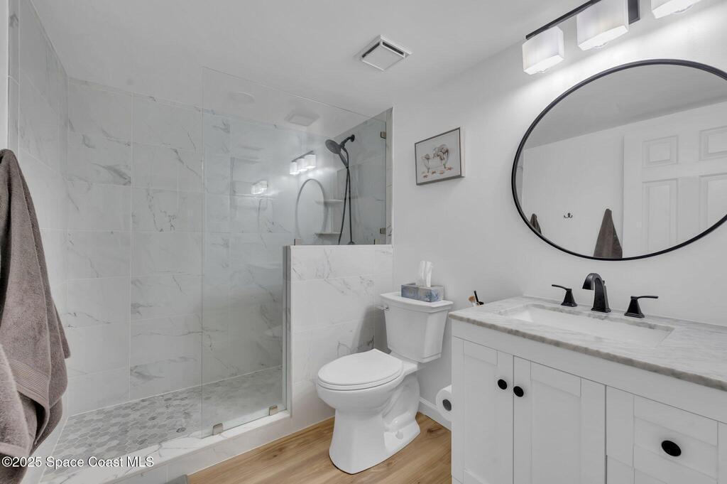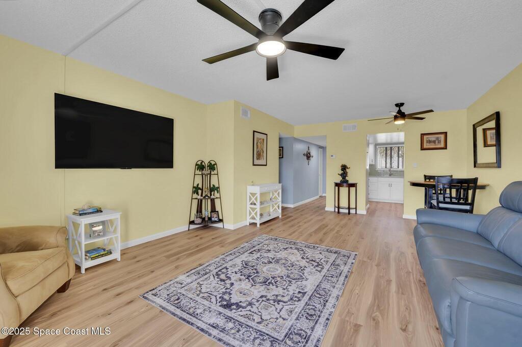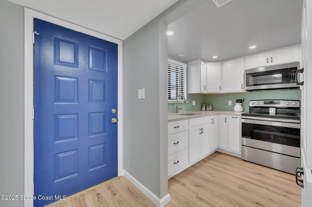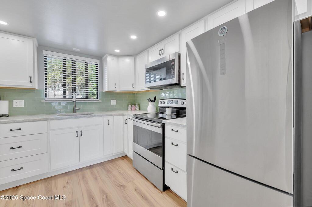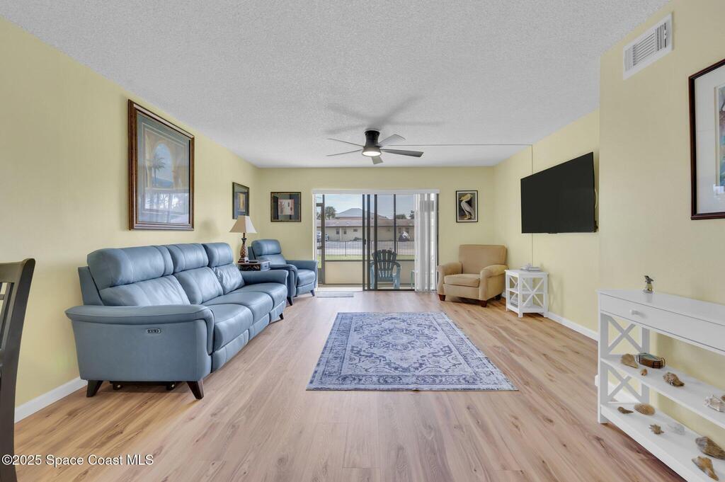 Coastal Living--Just One Block from the Beach! This beautifully upgraded 2-Bed, 2-Bath ground-floor condo combines coastal style, modern comfort, and a prime location. The fully remodeled kitchen features quartz countertops, stainless steel appliances, and a designer backsplash. Bright, open living area with wood-look LVP flooring create a warm and inviting coastal feel throughout. Both bathrooms have been tastefully updated, with the primary suite offering a spacious layout and stunning walk-in shower.Offered fully furnished and move-in ready, this condo is ideal as a primary residence, vacation getaway, or income-producing investment. Convenient on-site laundry, and bike parking. Recent updates include a newer roof, hurricane-rated impact windows, and shutters for peace of mind. Located just minutes from Port Canaveral, Cocoa Beach Pier, and Kennedy Space Center, with easy access to Orlando attractions. Experience the best of beachside living--your coastal lifestyle starts here!