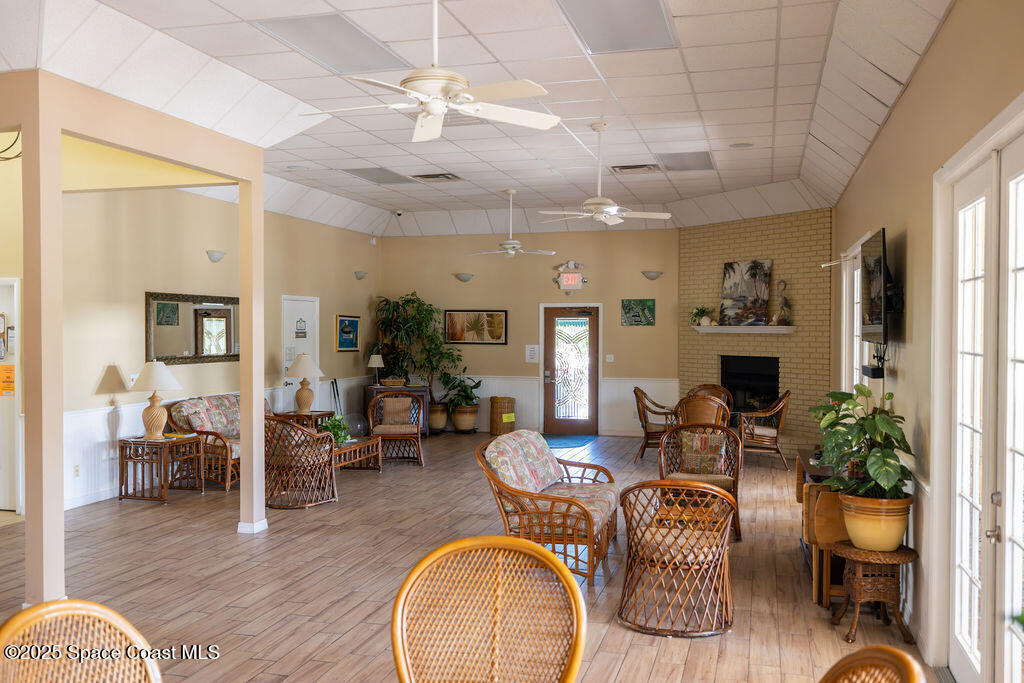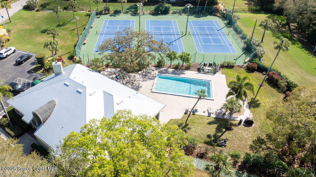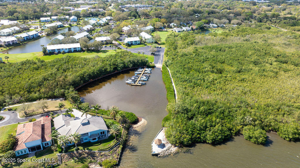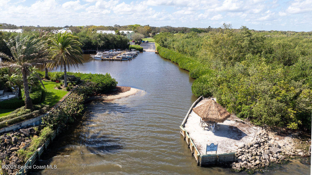 This complex has TONS of amenities! Pool, Sauna, Tennis, Golf, boat docks, boat/trailer storage, workout facility and more!! Situated on the Indian River Lagoon with boat access to the Atlantic Ocean a few minutes away... Home is nicely apportioned with laminate floors, beautifully tiled kitchen and baths, open layout with large master bedroom and guest room. Ample storage inside and out. ADA accessible 2nd bath. Photos and drone courtesy Lunar Impressions Photography.