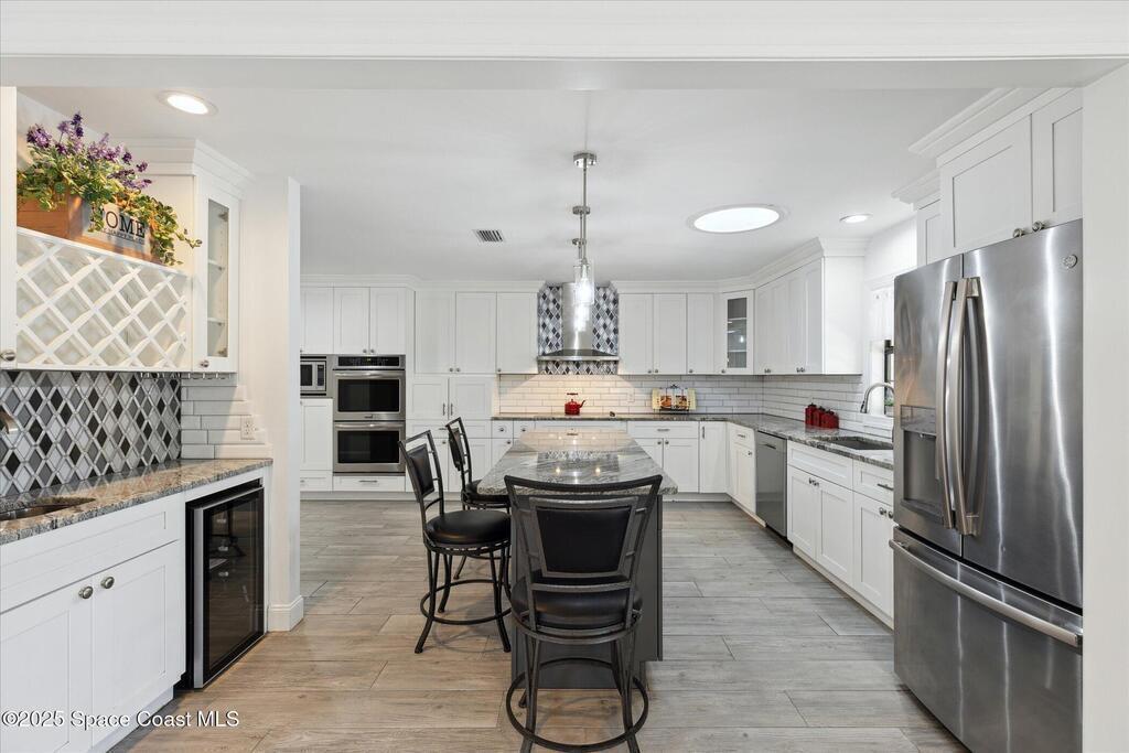 Dishwasher, Disposal, Double Oven, Electric Cooktop, Electric Oven, Microwave, Refrigerator, Wine Cooler