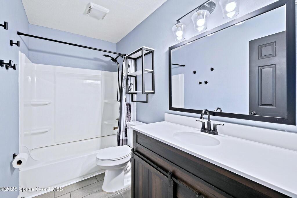 Wonderful 6 bedroom 2.5 bath home in the desirable subdivision of Fern Meadows! Boasting almost 3, 500 living square feet, this home features an attached 2 car garage, hurricane shutters, newer roof (2020), newer A/C units (2019 and 2021), newer water heater (2020), new luxury wood-look vinyl flooring in family room and master bedroom, new carpet on stairway, fenced back yard, indoor laundry room, and much more! The spacious eat-in kitchen offers granite countertops, large center island / breakfast bar, walk-in pantry, and updated appliances. Plenty of entertaining space from the formal living / dining room and downstairs family room; to the huge upstairs family room and back patio. The downstairs master suite includes walk-in closet, garden tub, tiled shower, and private toilet. Community amenities include 2 lakes with dock and walking path, basketball / tennis courts, and playground. Centrally located with easy access to beaches, Kennedy Space Center, and 45 minutes to Orlando!