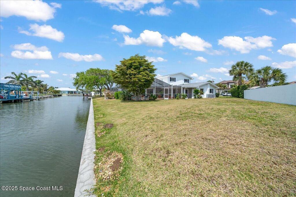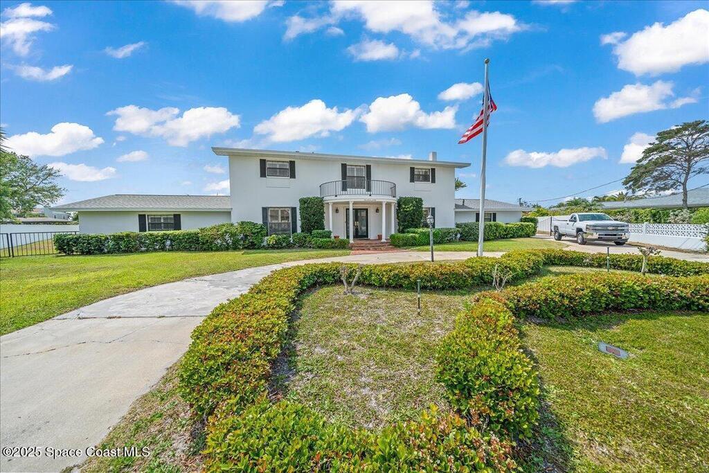 Tucked away at the end of a cul-de-sac, this American Colonial-style waterfront estate in Cocoa Beach offers an unmatched combination of privacy, history, and modern updates. With over 175 feet of direct water frontage, this 6-bedroom, 4.5-bath concrete block home sits on a massive lot and features a rare, grandfathered-in private boat ramp--one of only a few in Brevard County. The deepwater dock with a lift (8-9 feet) is perfect for boaters, offering easy access to the river and beyond.Recent upgrades include a brand-new roof, new AC units, impact windows, and shutters. Inside, copper plumbing and electric highlight the home's quality construction, while the 2020-updated kitchen seamlessly ties into the home's timeless charm. The first floor includes a private apartment with a kitchenette, ideal for multigenerational living or guest accommodations.