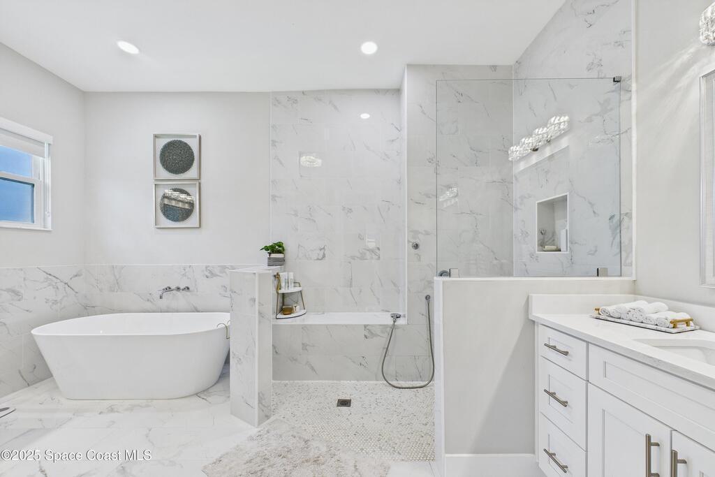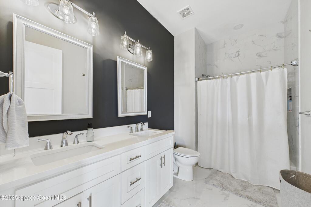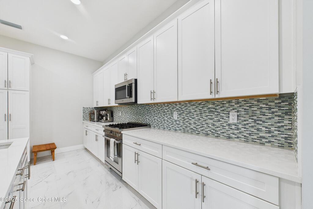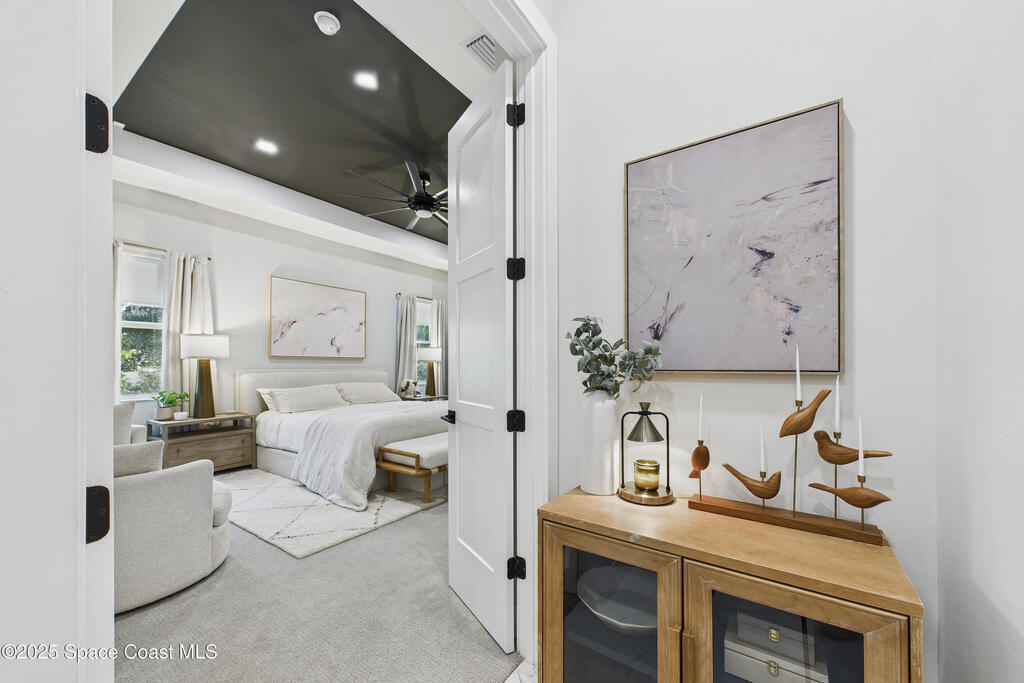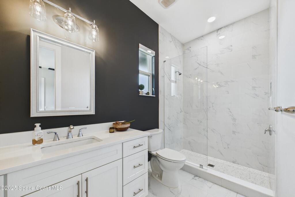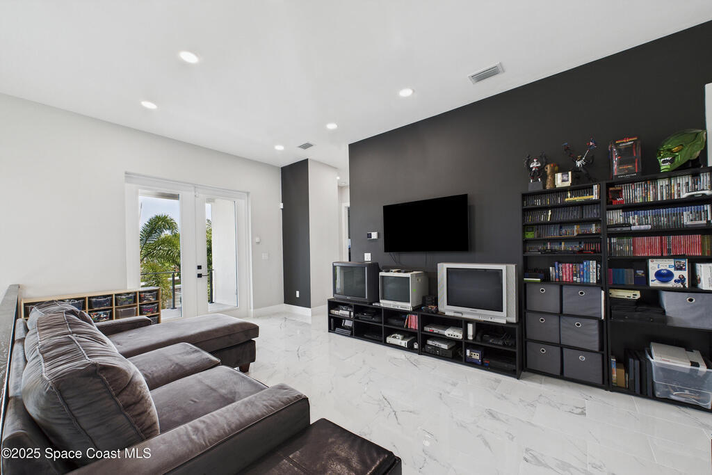 This 2022 contemporary is a true Indialantic stunner!Sky-high ceilings, marbled tile floors, and a stacked-stone fireplace define the sunlit great room. Sliding doors open to a fenced yard, covered lanai, and summer kitchen for seamless indoor/outdoor living.The chef's kitchen features quartz counters, Bosch appliances, a gas range, and a prep island. The first-floor owner's suite offers dual walk-in closets and a spa-worthy bath. Upstairs includes a spacious loft, six bedrooms, two balconies, and full laundry. She's a modern beauty, boasting a prime location! She's already exceptional, with room to add your personal finishing touches - 2345 N Riverside is a DIAMOND on the coveted beachside corridor.