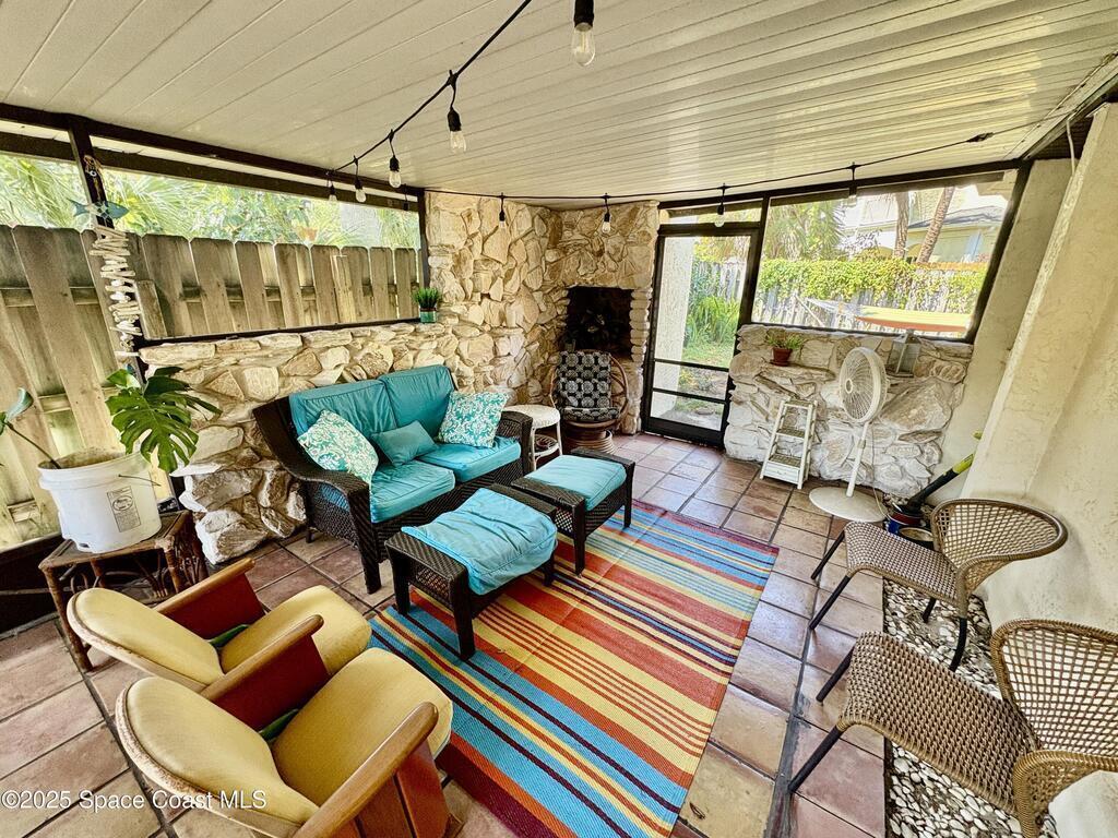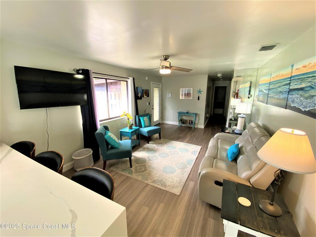 Extremely rare, Detached Single Family Home in Ocean Woods!! Renovated, 3-bedroom, 2 bath house. Walking distance to the beach in a private, gated community. Spacious and private fenced backyard. 500 sf Florida room with screen enclosure and built-in fire place. Attached 1 car garage. Interior has waterproof, vinyl plank flooring throughout. The kitchen boasts updated, soft close cabinets with pull out drawers, stainless steel appliances, and quartz counter tops. Ocean Woods community offers 2 pools, tennis courts and a rec center. Close to the Space Center, restaurants, shopping, and the Port.