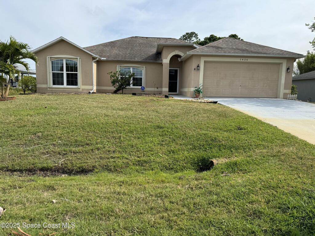 Very clean ready to move in, 3 bedroom 2 bath 2 car garage home, with screened in patio, wood and tiled floors, ceiling fans, washer and dryer, window treatments, yard shed for extra storage, rent includes solar panels near Bayside lakes in a very quiet neighbor hood.