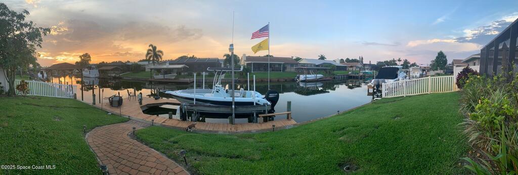 Wondering why it's back on the market? Last contract fell apart because financing fell through. If you are in the market and can get qualified this house is a MUST see!This beautiful 4-bedroom, 2-bathroom waterfront home is located on a wide canal off Sykes Creek, complete with a boat lift, approximate 70 feet of dockage for easy offshore fishing access. Merritt Island does a annual boat parade. Enjoy breathtaking sunsets, including rocket launches from your private backyard oasis featuring a sparkling pool. Schools A and B rated Thomas Jefferson and Lewis CarolConveniently located just a short drive from the Kennedy Space Center, 10 min from Cocoa Beach and 40 min from Orlando and so much more. This home offers the perfect blend of relaxation and adventure. Roof 2017 Va Welcome!