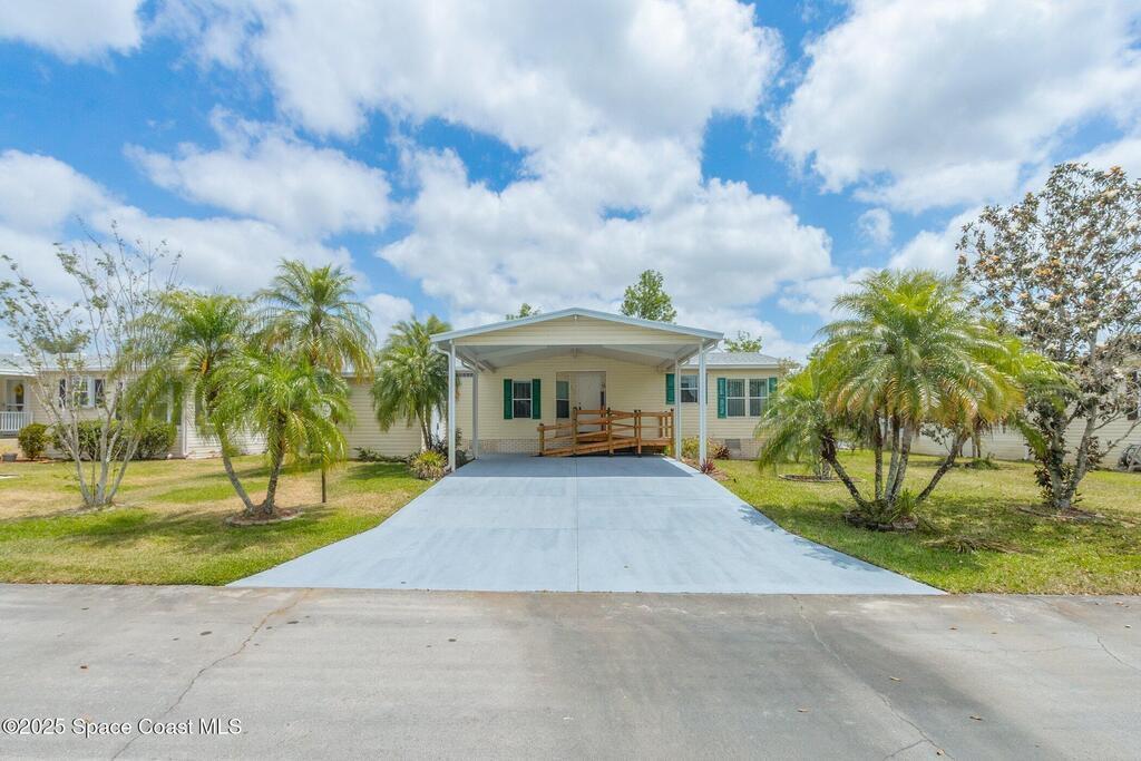 Live where you Own the Land and HOA dues are low.This 3/2 home has a large patio with a water view, two storage areas, Handicap ramp, and room for guests to park. Open floor plan for the best atmosphere in doors and a great water view out back. View rocket launches from home and enjoy the wildlife living on the water provides. Handicap ramp can be removedif you wish, you even have room to build a garage instead.a little TLC this home becomes the envy of the neighborhood.