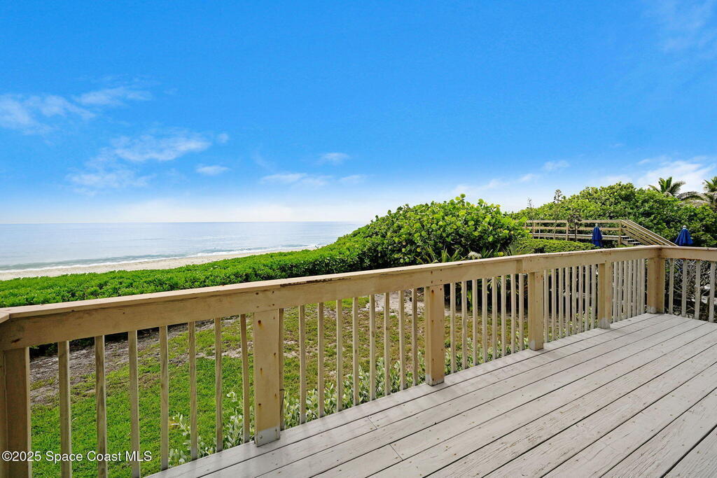 Ocean Front South East corner Ultimate Surfer's Dream Home with private each access.If you like Fishing, Golfing, Catching perfect waves, walking the shoreline, watching wild sea life and birds or being fascinated by Sea Turtles nesting in your backyard, this home is for you..Spacious, fully renovated open kitchen, with new cabinets, gorgeous granite waterfall countertops, Top of the line appliances, washer & dryer hookup available at top floor full home water filtration systems, Roof 2019, AC 2019, 24x48 White Porcelain floor, smart toilets, electric car charger and much more.Enjoy uninterrupted beach views from Cape Canaveral to Vero Beach. Miles of sandy beaches, wildlife and blue waters. 15-foot ceilings and over 2000 square feet interior plus 3 outside decks.Two master suites on the second level with their own terraces, plus a huge oceanfront 18x13 loft on the top floor surrounded by multiple panoramic windows. Seller financing available