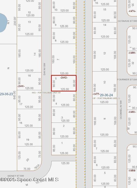 THIS BEAUTIFUL PROPERTY IS HALF OF A .46 ACRE DOUBLE LOT FOR SALE THAT WILL PROVIDE YOU WITH PLENTY OF ROOM FOR EVERYTHING! (ADJACENT LOT 4 IS AVAILABLE UNDER A SEPARATE MLS # BUT MUST BE SOLD TOGETHER) PEACEFUL SETTING WITH NICE HOMES IN THE IMMEDIATE AREA AND A POWER POLE IN FRONT FOR ACCESS. THE CANAL BEHIND PROVIDES EXTRA PRIVACY FROM BACKYARD NEIGHBORS. EASY TO FIND JUST AROUND THE CORNER FROM MADDEN WHICH IS PAVED. THIS LOCATION IS JUST 7 MINUTES FROM THE BEAUTIFUL BAYSIDE LAKES DISTRICT, FEATURING A PUBLIX, DUNKIN, STARBUCKS WALGREENS, TASTY EATERIES, MEDICAL SERVICES, AND MORE! BAYSIDE HIGH AND WESTSIDE ELEMENTARY SCHOOLS ARE A SHORT 6-MINUTE COMMUTE. THE ST JOHNS HERITAGE I-95 INTERCHANGE IS 13 MINUTES AWAY, AND THE BUSY MALABAR ROAD CORRIDOR IS LESS THAN 15 MINUTES, OFFERING A LONG LIST OF STORES, RESTAURANTS, AND EVERYDAY CONVENIENCES. THIS SITE UTILIZES WELL WATER AND SEPTIC.