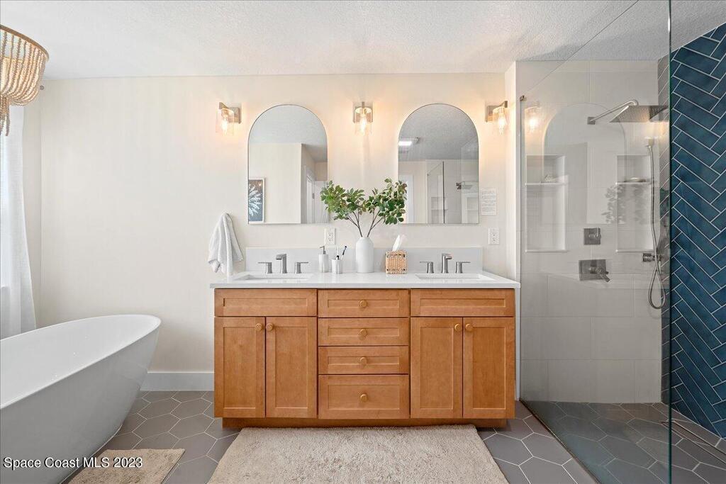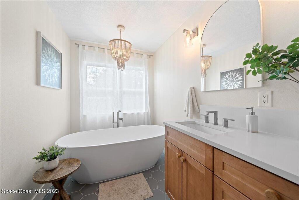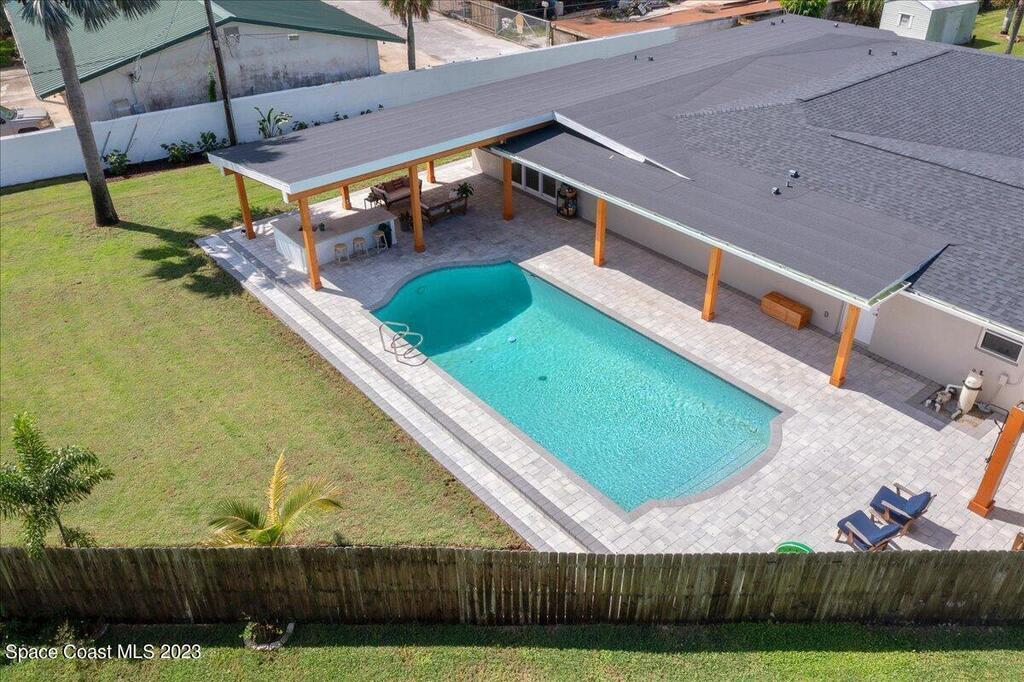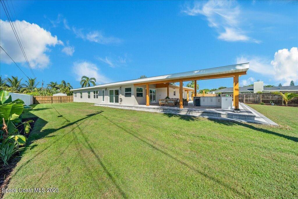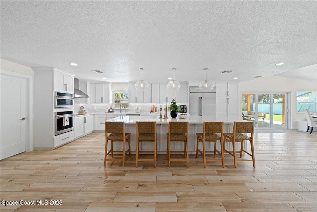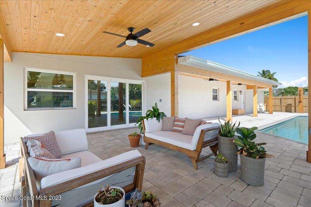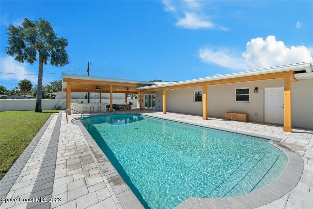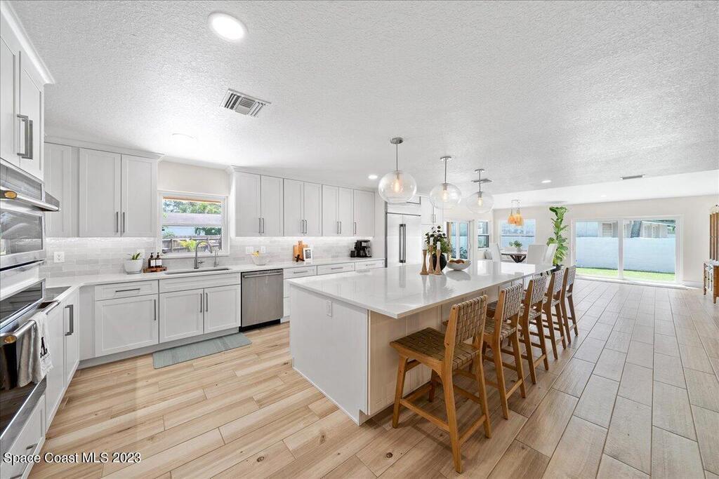 Welcome to this exquisite, one of a kind property in the heart of Satellite Beach. Featuring 5 beds, 3 baths and over 3, 000 sqft of living space, this luxury home was meticulously designed with complete attention to detail from top to bottom and has an effective year built of 2022. Just bring your clothes and toothbrush to this fully furnished oasis as everything is included from wi-fi, electric, pool maintenance, lawn care, pest control, water and sewer. Perfect if you are renovating, relocating, or just need a place to relax for a while. Kitchen features an enormous 12 ft island with quartz countertops, full set of Monogram appliances with a seamless inset convection cook top and a 48 inch built in fridge.