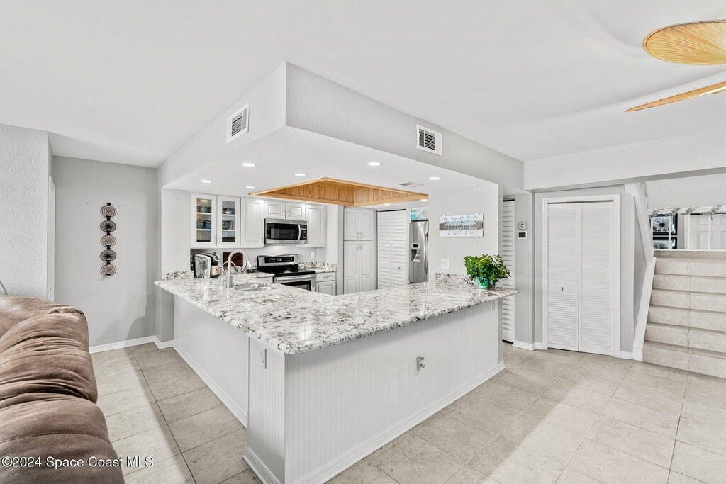 Soak in endless ocean views & live wrapped in sea breeze luxury from this rare 2, 300 sq ft residence at The Breakers--where every room whispers tranquility & every balcony invites escape. 3 bedrooms, 2 baths, & three private balconies create a layout that celebrates both sunrise & sunset. The fireplace-warmed primary suite opens to a private east-facing terrace with panoramic Atlantic vistas--an ideal perch for morning coffee or moonlit reflection. Just past the en-suite bath, a secluded west-facing private deck offers the perfect spot for sunbathing or an afternoon unwind. A 3rd balcony extends the main living space outdoors for effortless entertaining. Inside, granite surfaces & sleek tile flooring lend style & ease. Direct beach access brings the ocean to your doorstep, while top-tier amenities--tennis, pickleball, putting green, heated/chilled pool, & gym--complete the picture. Located in peaceful, picturesque Melbourne Beach--where unspoiled shoreline meets laid-back charm.