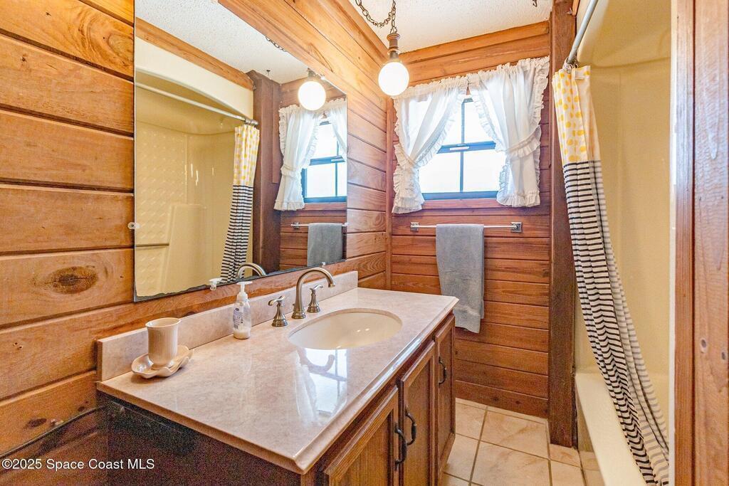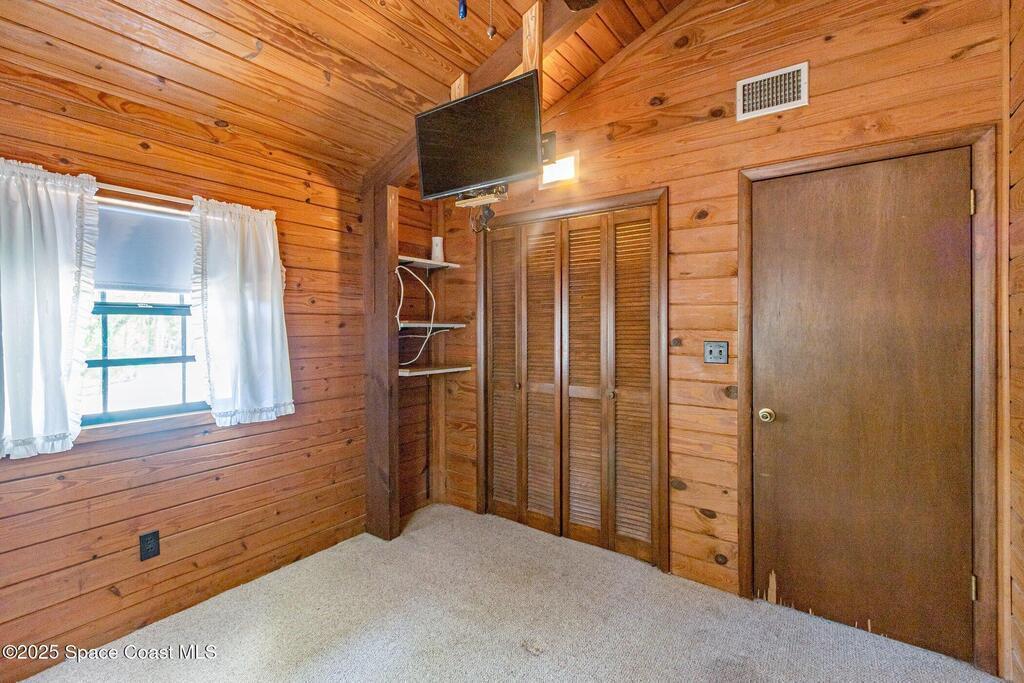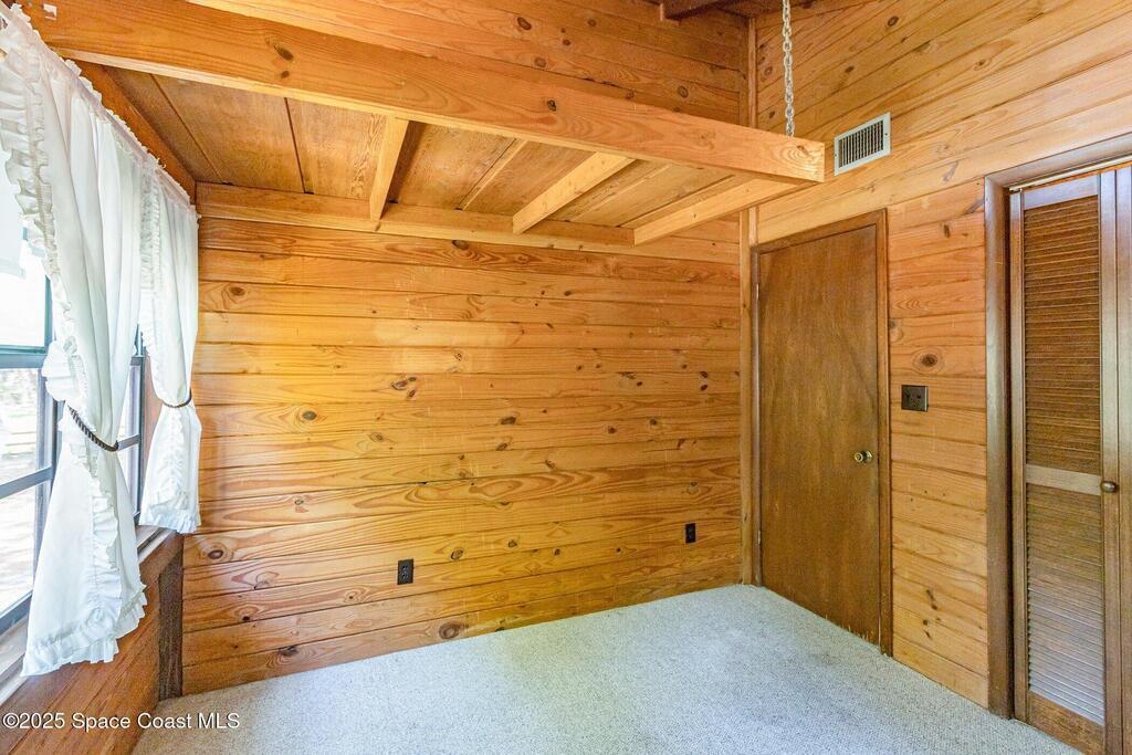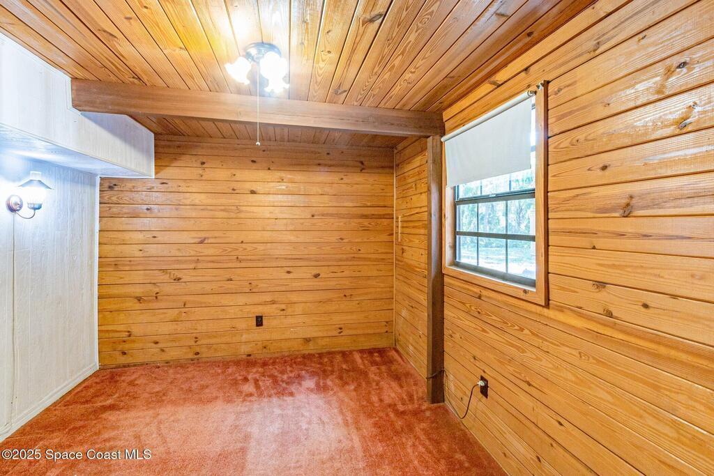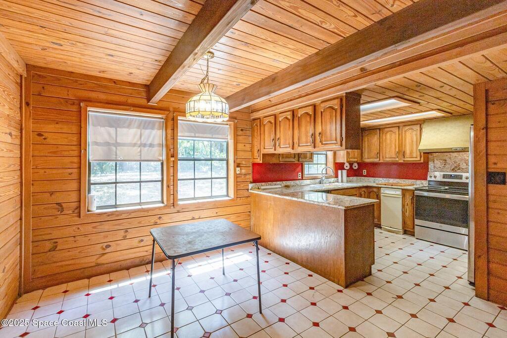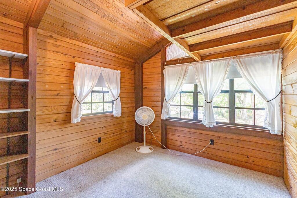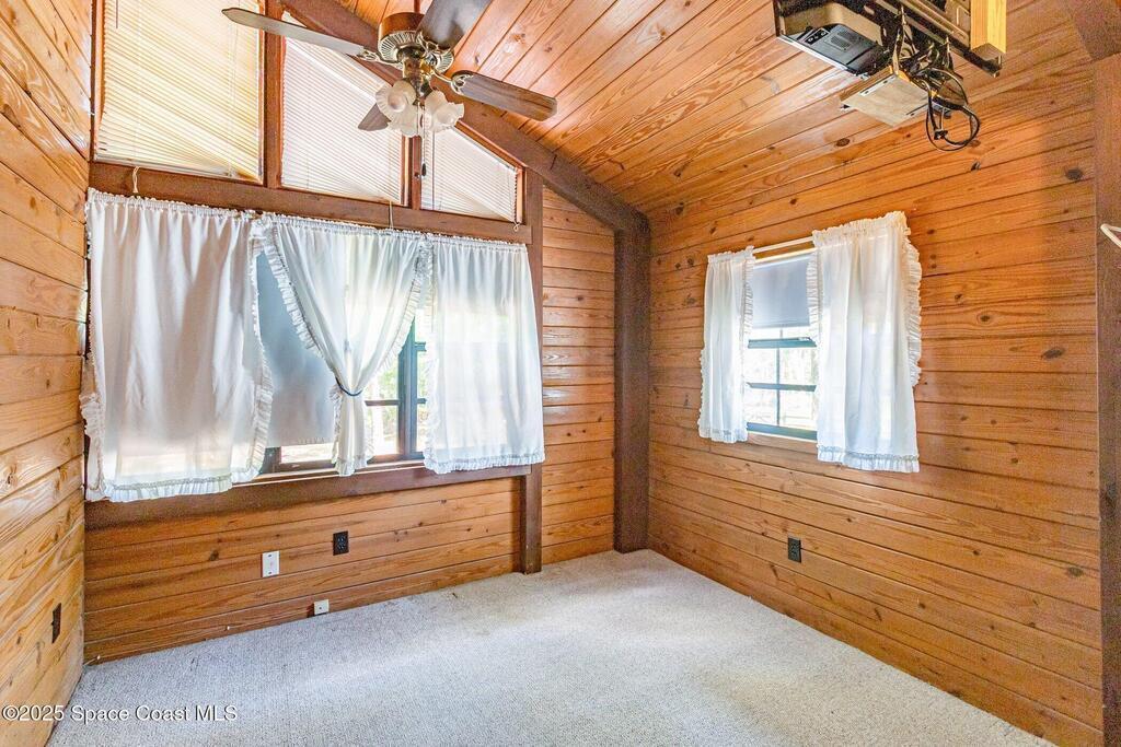 New Price for this 3 acre property with 2 stall barn and fenced pasture for horses and beautifully wooded lot on north Merritt Island. You will enjoy the peace and quiet. This flag lot property boasts spacious 3 bedroom 2.5 bath home with 2 car garage. Large downstairs living area with vaulted ceilings, fireplace with oak wood walls and high beams make you feel you truly are living in the woods. Kitchen features oak cabinets with granite countertops. Den/office off the kitchen could function as 4th bedroom. Interior laundry. Upstairs master has large windows for lots of light and a fireplace for those cool nights. Large screen porch looks out to the horse pasture. 2 stall horse barn with electric and fans. Large fenced pasture. Roof approximately 3 years old, water heater 4 and septic replaced in 2007. Stop and see this property today!!