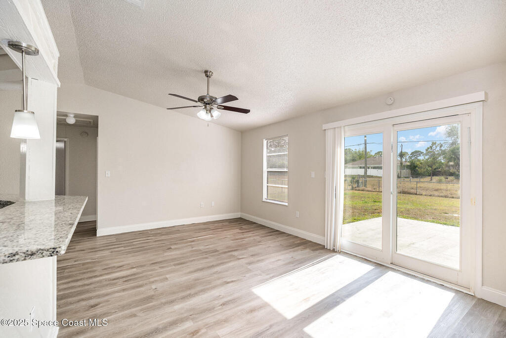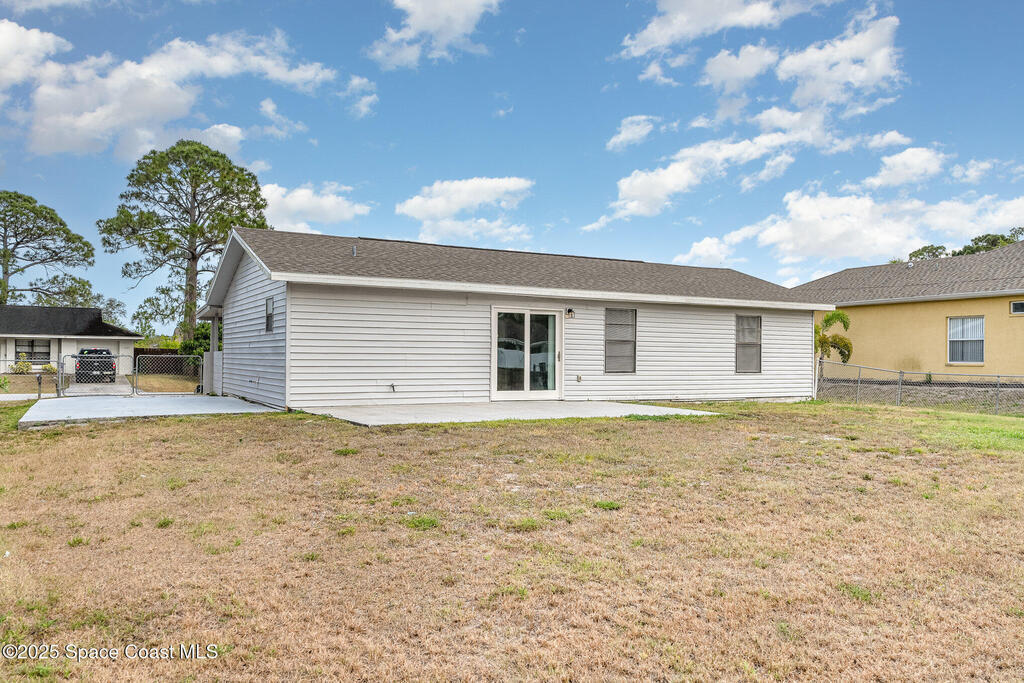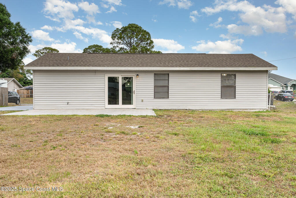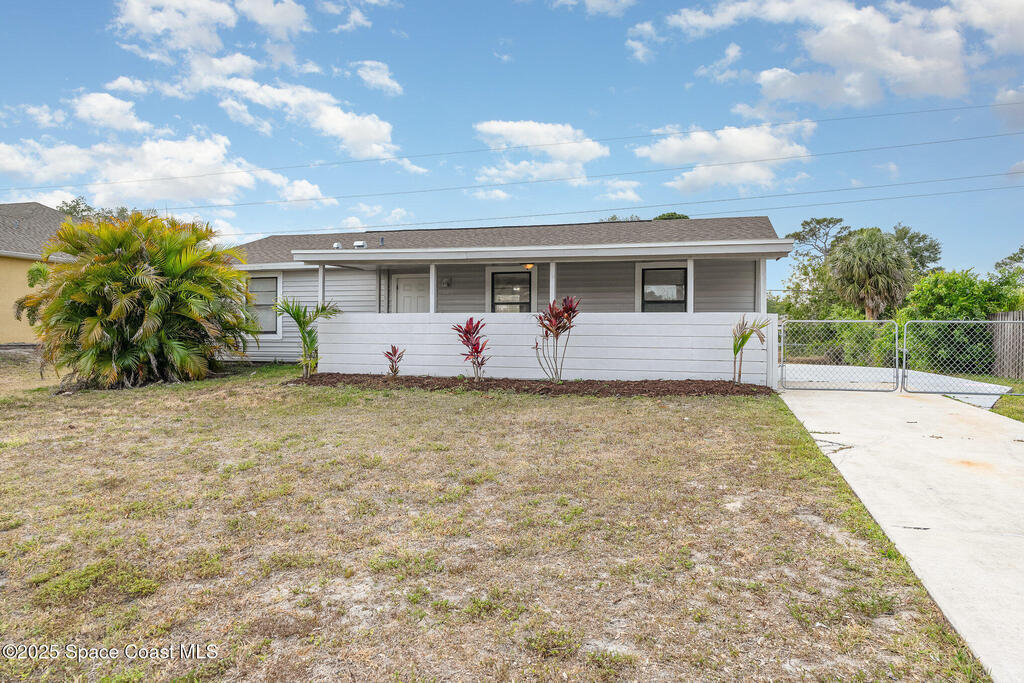 Welcome to this freshly updated 3-bedroom, 2-bath home on a spacious 0.35-acre lot in NW Palm Bay. Featuring new luxury vinyl plank flooring throughout, a split-bedroom layout, and a bright kitchen with a pantry, this 1, 104 sq ft residence offers comfort and style. Enjoy outdoor living on the covered porch and patio, with ample room to expand or entertain. Nestled on a quiet street, you're just 12 minutes from I-95 and Hammock Landing Shops, 20 minutes to Downtown Melbourne, and 25 minutes to the beach. Nearby parks include Turkey Creek Sanctuary and Fred Poppe Regional Park. Experience the perfect blend of tranquility and convenience in this move-in-ready home.