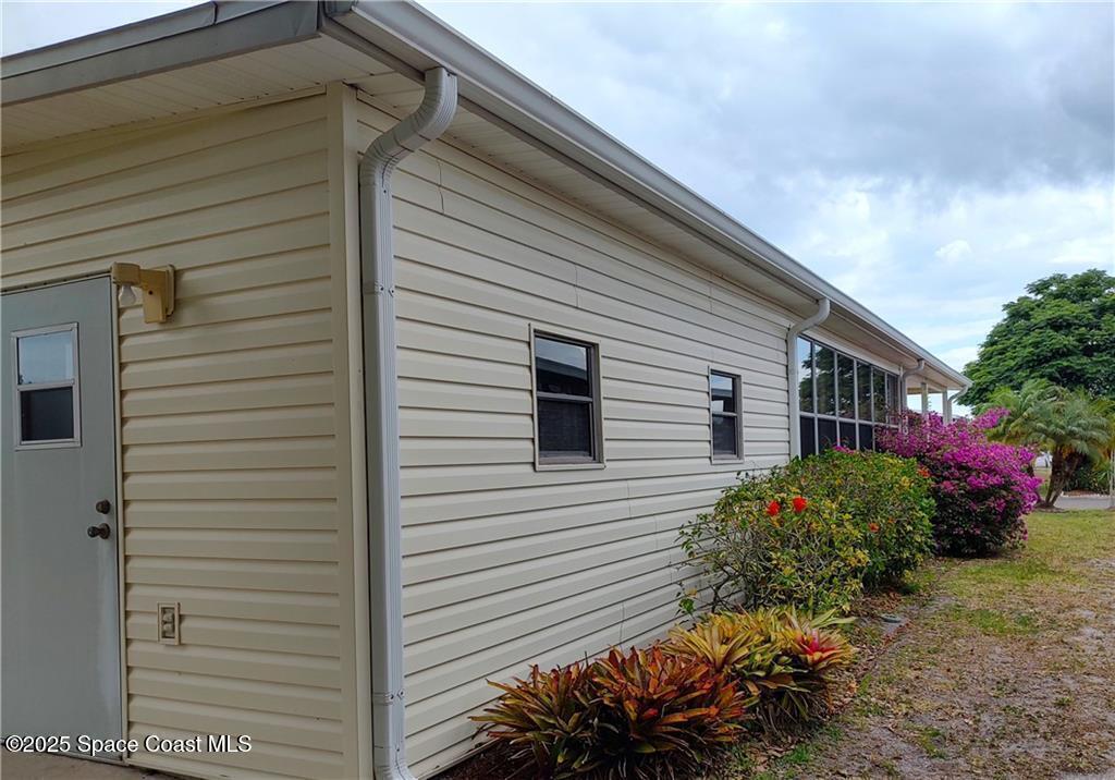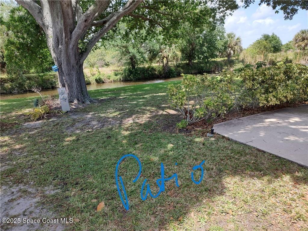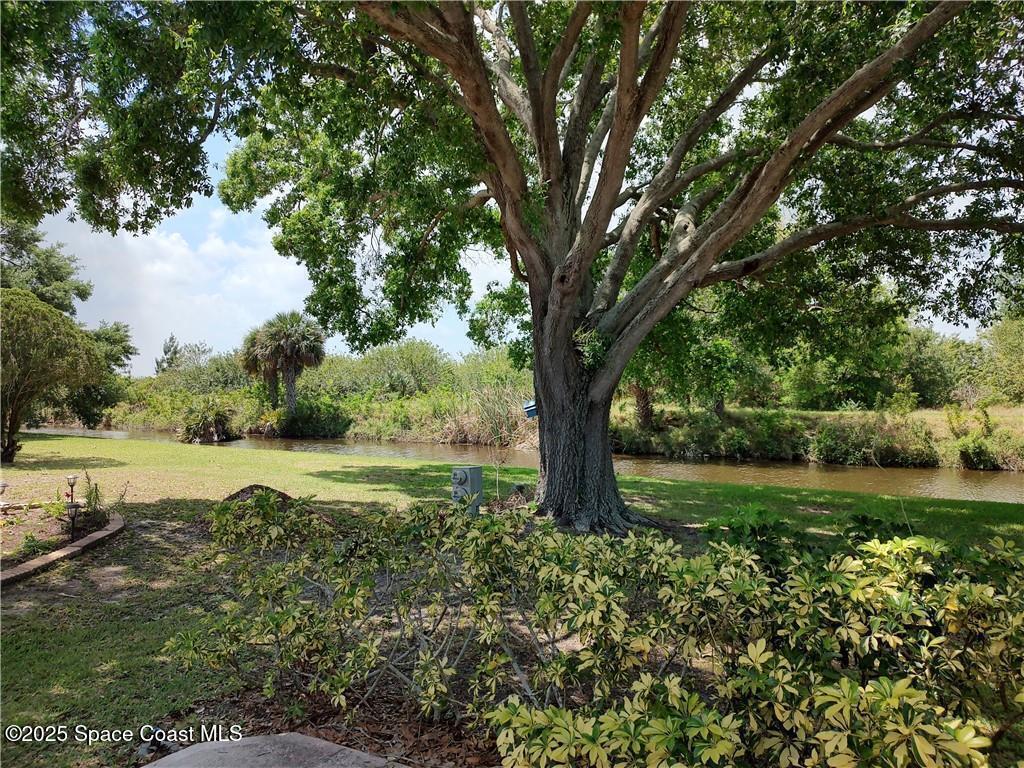 Location, location! Offering one- owner home with a charming waterview. Peaceful, w/ private back yard on a perimeter lot. Patio overlooks the water. Florida room is under AC . Family room extends off kitchen. Generous buffet/ wall units w/ excellent storage and shelving in dining & living room are not photographed, because sellers are in the process of moving. 2 BR/ 2 full baths. Built in workbench in storage shed. Good size, good flow, good vibes! Barefoot Bay has its own private beach on oceanside, +private walkway access to river. Endless social clubs and amenities. Water & Sewer BBay.