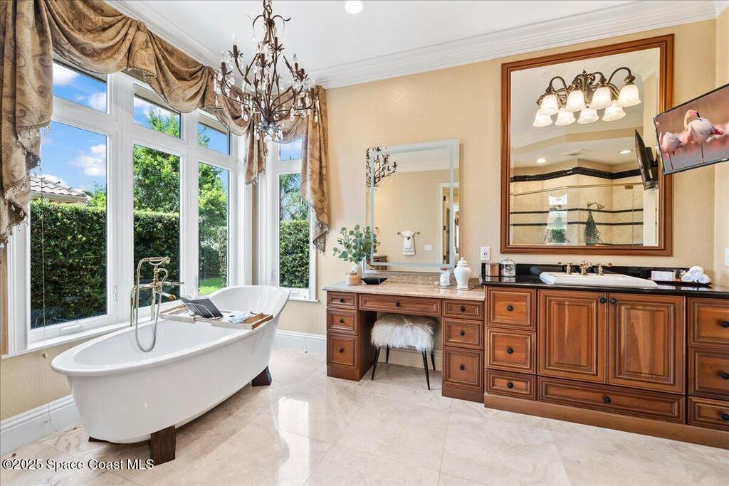 Lansing Island--arguably the most exclusive address on Florida's Space Coast. This private island, nestled between the Grand Canal and the Banana River, offers unparalleled seclusion and prestige. Behind its guarded gates lies a canal-front estate spanning nearly 7, 000 sq ft, delivering resort-style living on .78 acres. Both inside and out, the property has been extensively renovated in recent years. Lush, layered landscaping by renowned designer Susan Hall features seven varieties of fruit trees, manicured turf, and elegant new hardscaping that evokes the feel of a private club.Inside, 24-foot ceilings and an abundance of glass bathe the home in natural light, creating a setting that is both grand and welcoming. The split-bedroom floor plan enhances privacy, while expansive living, dining, and entertaining spaces flow effortlessly together.