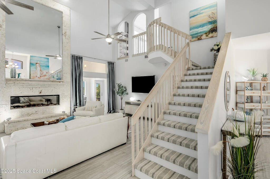 Welcome to 4070 South Tropical Trail... a rare waterfront sanctuary where the Florida dream becomes your everyday reality. Wake up to sweeping views of the Banana River (approx 188 ft waterfront). Spend quiet mornings paddle boarding from your private launch... and gather for golden hour by the firepit, where sunrises feel like art and sunsets never repeat. This 4-bedroom, 3-bath estate sits on nearly 3 acres of serene natural land offering refined privacy, without compromising elegance. Inside, vaulted ceilings & soft coastal finishes frame every room with natural light and timeless style. Entertain with ease in the screened-in pool area, cook in the brand-new outdoor kitchen, and toast under the stars surrounded by the sounds of water and tropical breezes. From the widened drive to the expanded interiors and new fireplace, every detail has been thoughtfully updated. If you've been searching for effortless island living with close access to beaches & the mainland, welcome home.