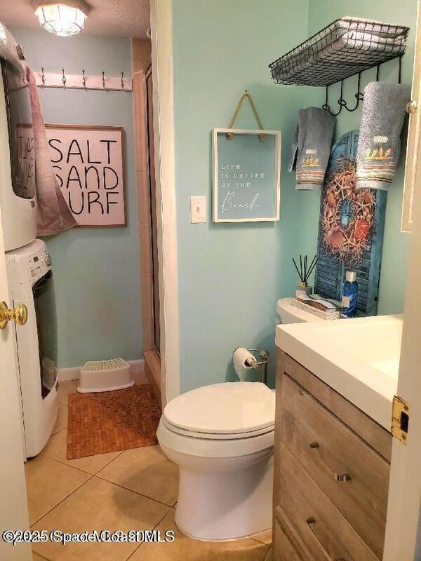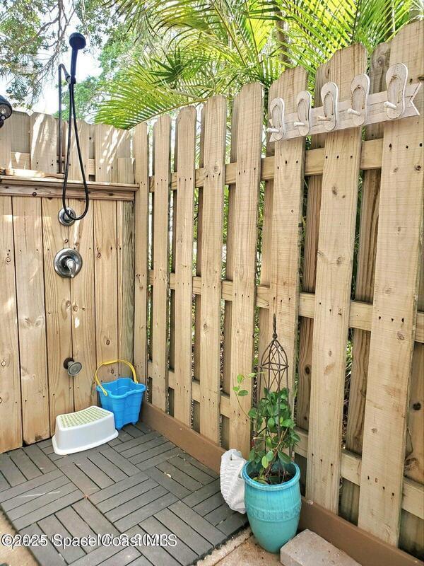 Nestled in the trees, this hideaway is the perfect place to relax and unwind on your next vacation. Just a five minute walk along a shady nature trail to a private beach on the Atlantic ocean, this 2 bedroom, 2 bath townhome features sliders from both bedrooms onto a balcony overlooking the 2 story screened patio set amidst lush tropical landscaping. The open plan first floor features a fully equipped kitchen with granite counters and new stainless appliances adjoining the living and dining areas in addition to a full bath and laundry. This unique floor plan offers ideal indoor outdoor living with all rooms opening onto the screened outdoor area. Freshly decorated with a very tropical island motif you'll feel as if you've been transported to paradise.Fully fenced, this retreat provides a serene sense of privacy and an outdoor shower. Not only are linens and towels provided but so are beach chairs, umbrellas, a beach cart and a selection of sports and beach accessories.
