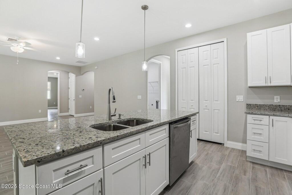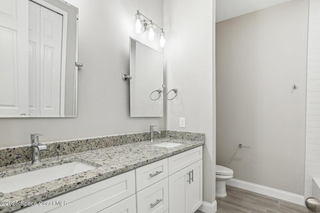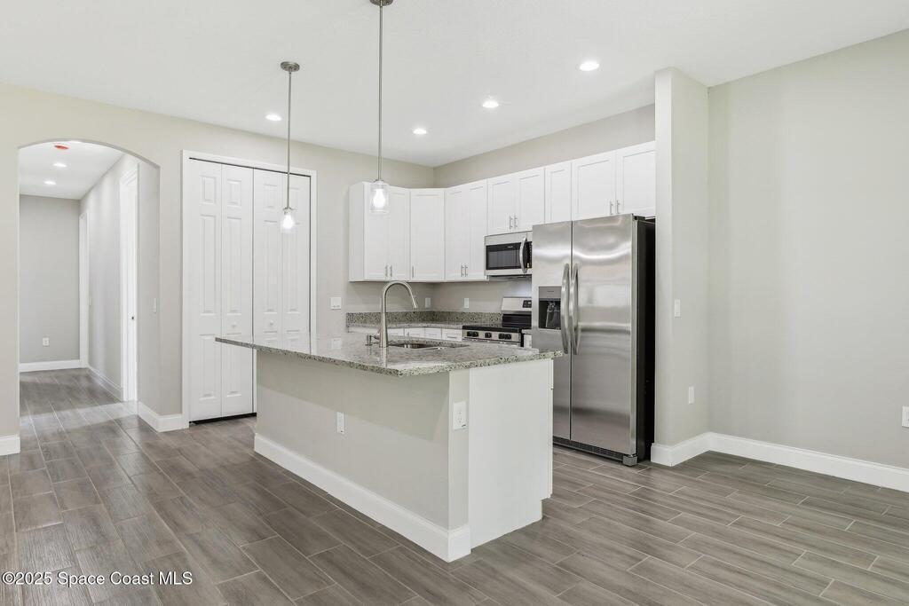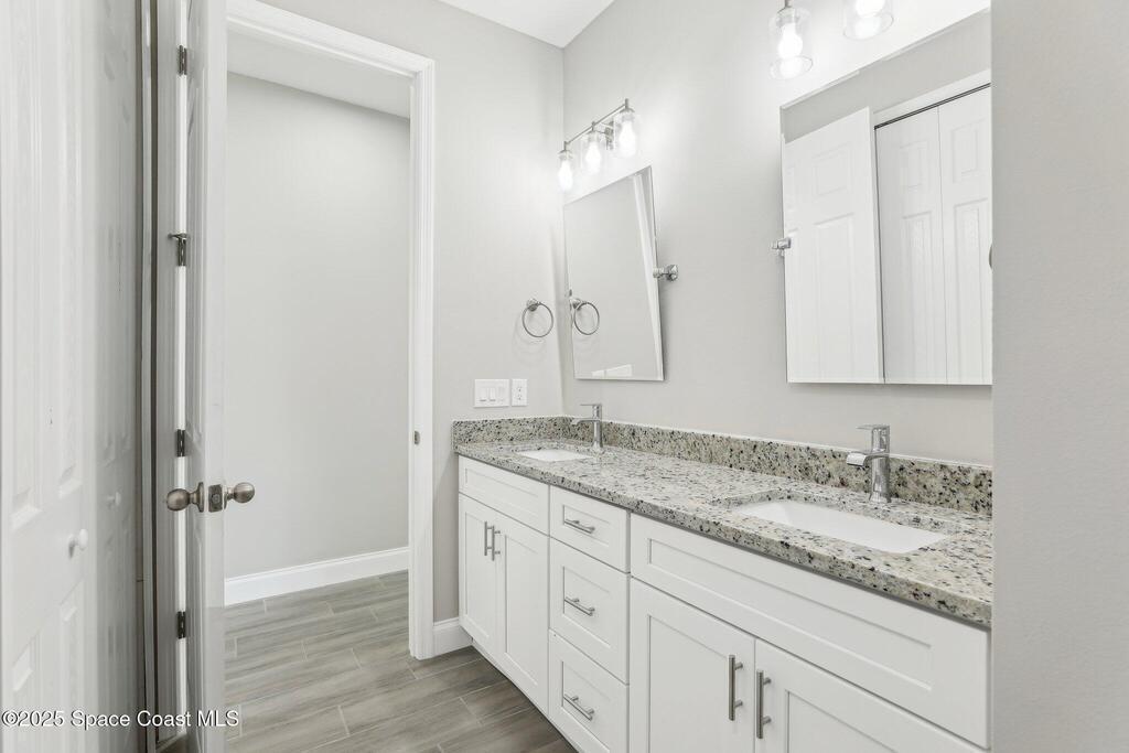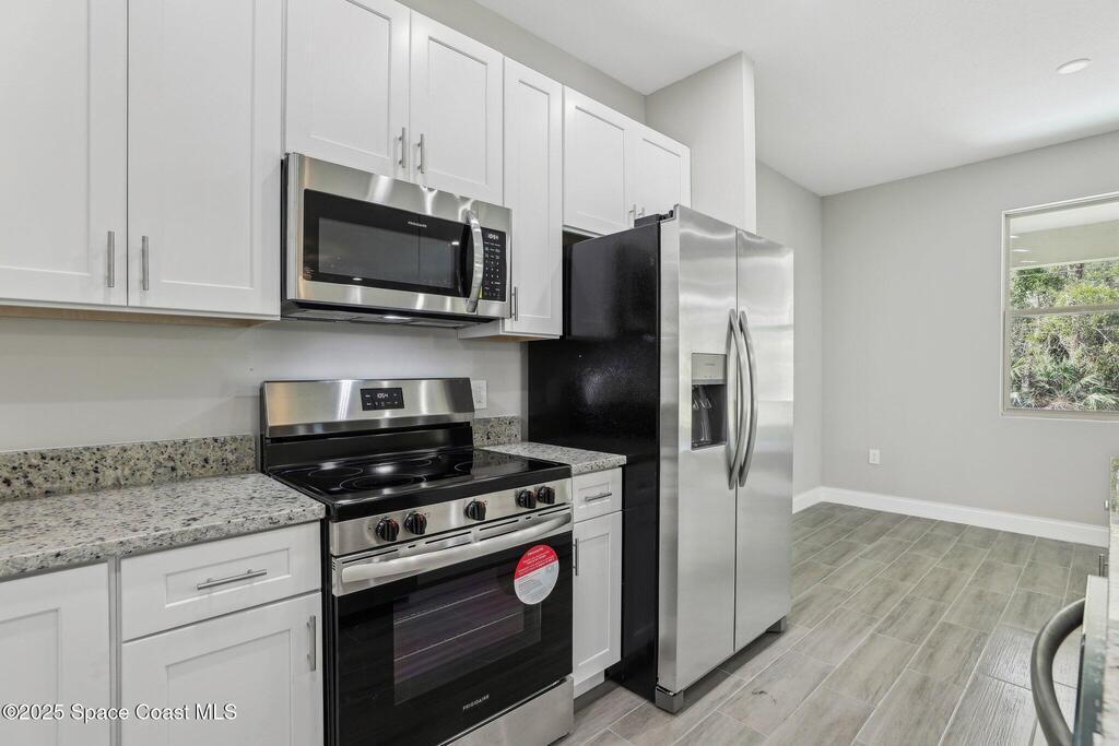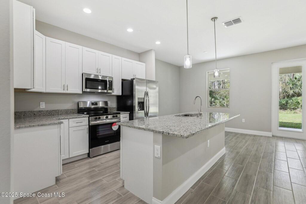 MOVE-IN READY - NO CLOSING COST LOANS AVAILABLE. One or more photo(s) has been virtually staged--New Construction. This Luxurious 4-bedroom, 2.5 Bath Property is exquisitely built with all of the upgrades nestled in the heart of Palm Bay. Inside you will find a wonderfully open floor plan perfect for gatherings and entertaining. The capacious Chef's Kitchen is stylishly equipped with an island, solid wood cabinets, stainless steel appliances and ample storage. The contemporary living space is bursting with natural light and a flowing layout that is inviting and relaxing. Luxuriate in the vast Primary Suite that offers a collection of modern conveniences. This beautiful house is full of INCLUDED upgrades: solid wood soft close cabinets in the kitchen and in the bathrooms, luxury vinyl plank flooring (no carpet), and floor-to-ceiling tiles in the showers, bathroom niches, granite countertops in the kitchen and baths, 9'4'' ceilings, 8-foot doors, luxury handles, and an electric garage