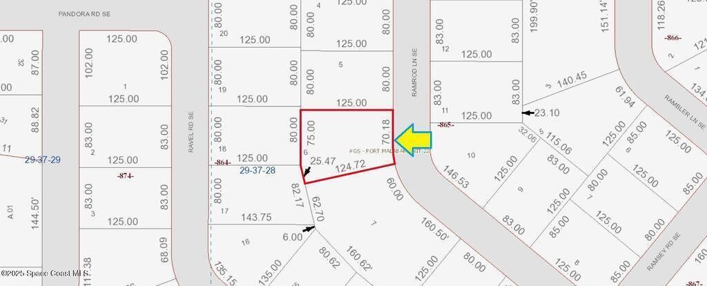 It's an 0.24 acre buildable residential lot available in Port Malabar Unit 22 of Palm Bay. Located in the southeast section, this lot is just 2.9 miles - 7 minutes to Columbia Elementary School, 3.4 miles - 9 minutes to the Publix Supermarket, 12.1 miles - 31 minutes to Melbourne Airport, and 17 miles - 31 minutes to the beaches of Indialantic. From exit #173 of I-95 go west on Malabar Road for .2 miles, left on San Filippo Drive for 4.4 miles, right on Ramsdale Drive for .4 miles, and left on Ramrod Lane. The lot will be on your right.
