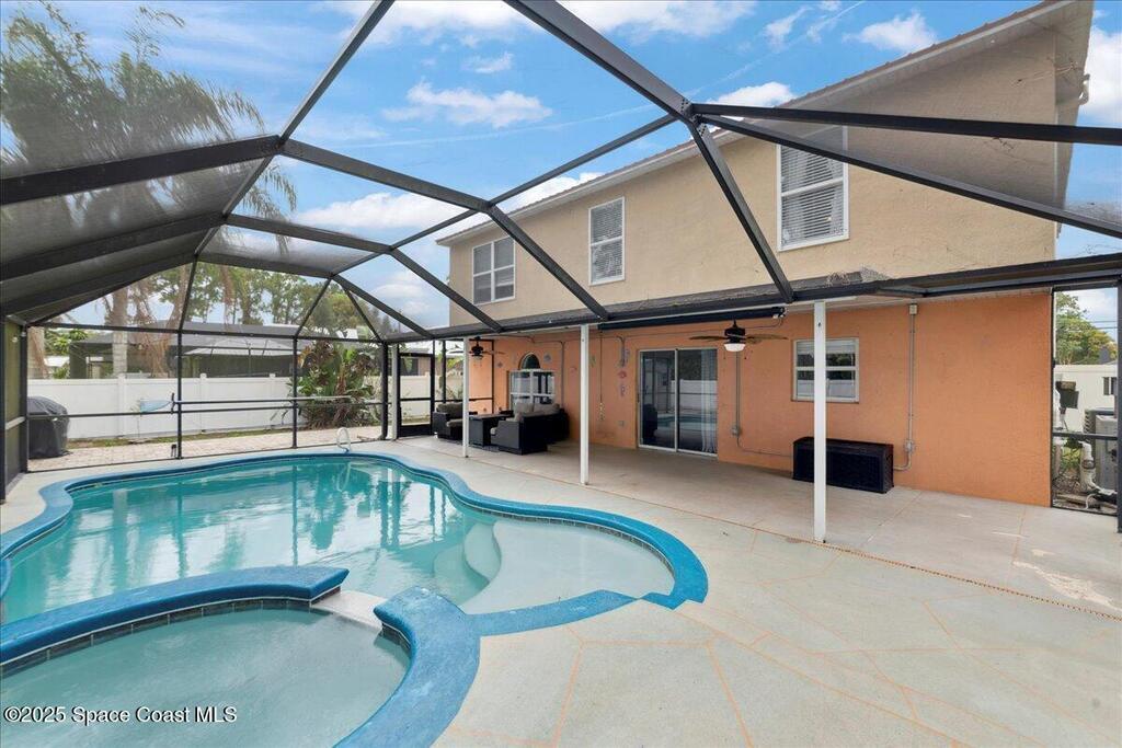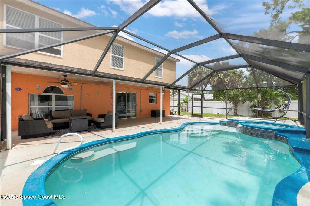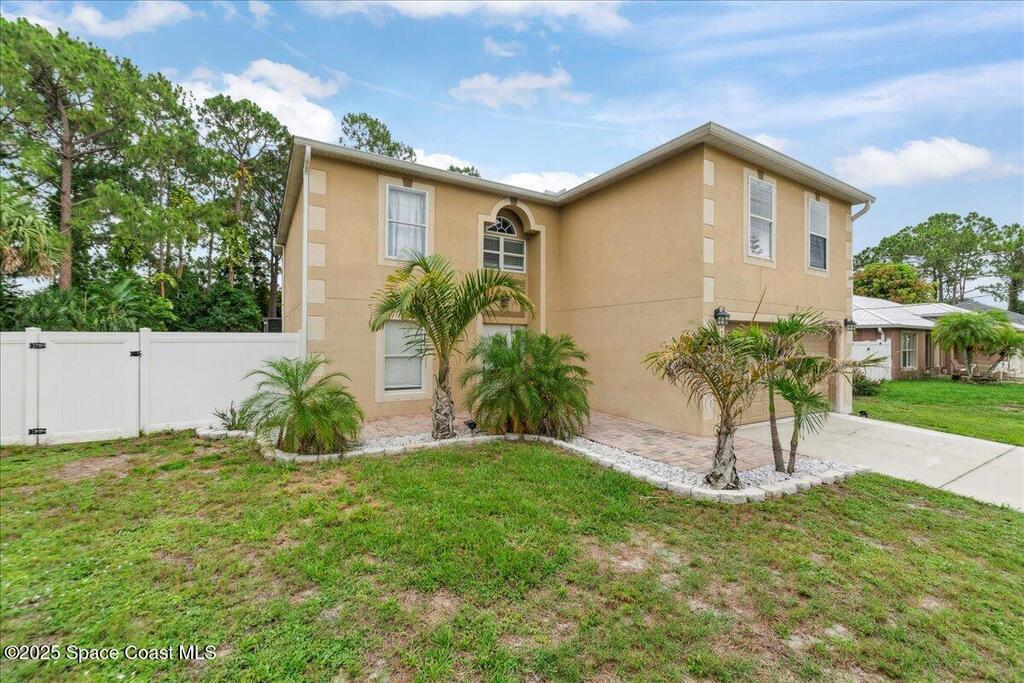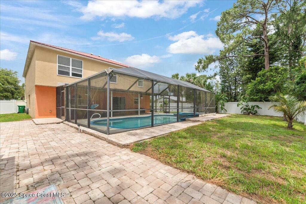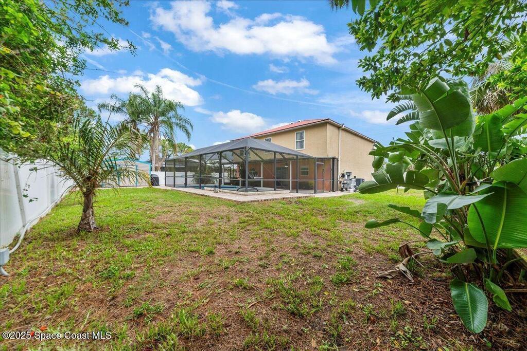 Spacious, versatile, and perfect for Florida living!This pool home offers 4 bedrooms, 2.5 baths and a flexible bonus room on the main floor ideal for a potential 5th bedroom, gym, home office, or playroom. A dedicated dining room and half bath are also located downstairs, along with a bright, open-concept kitchen featuring an island, prep sink, pantry, all overlooking the large living space. Upstairs, you'll find the primary & 2 additional bedrooms, a full bathroom with a dual sink vanity, and a loft area that opens to the foyer below. The oversized primary suite features dual walk-in closets and a spacious ensuite with double vanities.Out back, enjoy your own private oasis with a screened-in saltwater pool and spa both heated for convenience. The fully fenced yard includes space for RV or boat parking and is lined with low-maintenance white vinyl fencing. Additional highlights include a durable 2016 metal roof, two HVAC systems!