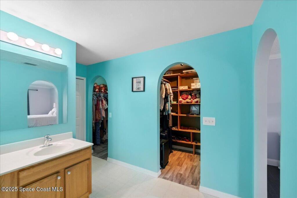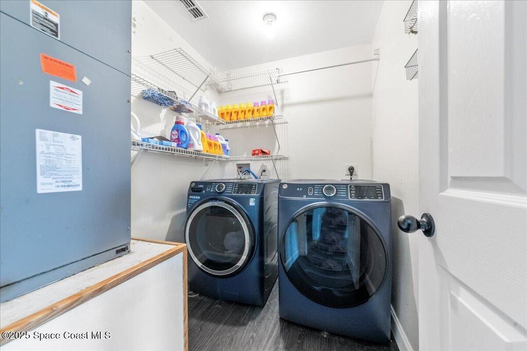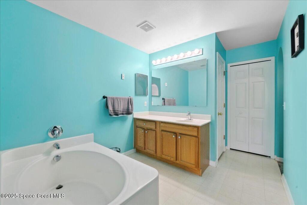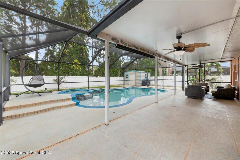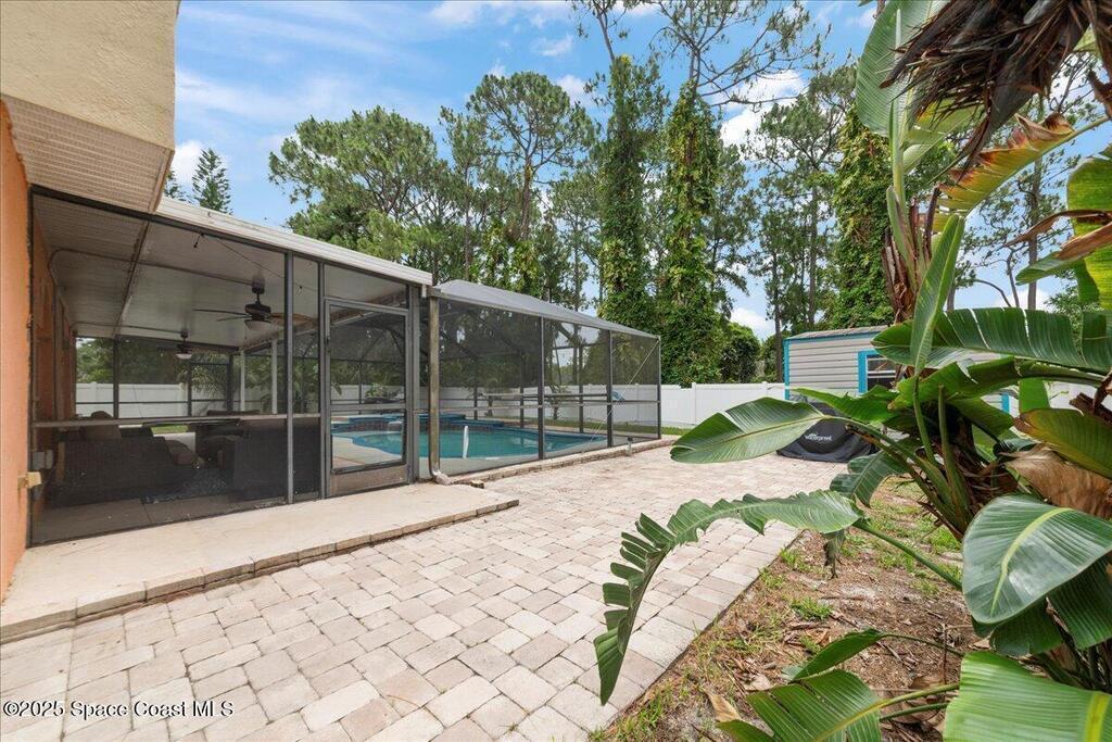 Spacious, versatile, and perfect for Florida living!This pool home offers 4 bedrooms, 2.5 baths and a flexible bonus room on the main floor ideal for a potential 5th bedroom, gym, home office, or playroom. A dedicated dining room and half bath are also located downstairs, along with a bright, open-concept kitchen featuring an island, prep sink, pantry, all overlooking the large living space. Upstairs, you'll find the primary & 2 additional bedrooms, a full bathroom with a dual sink vanity, and a loft area that opens to the foyer below. The oversized primary suite features dual walk-in closets and a spacious ensuite with double vanities.Out back, enjoy your own private oasis with a screened-in saltwater pool and spa both heated for convenience. The fully fenced yard includes space for RV or boat parking and is lined with low-maintenance white vinyl fencing. Additional highlights include a durable 2016 metal roof, two HVAC systems!