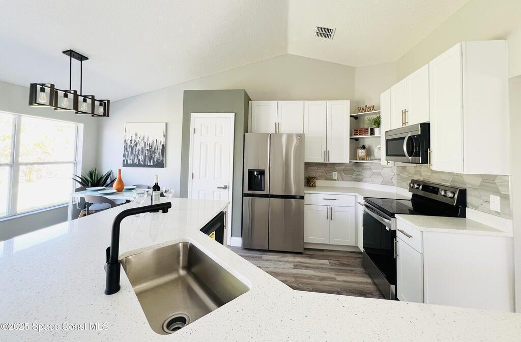 Come see your new home or investment! Modern remodeled 2023 home concrete block on city water. Fireplace in the living room for those cozy days! No HOA, open concept, new roof 2023, upgrades include kitchen cabinets 42'' tall, quartz countertop seating 8+ stainless steel appliances, tile in shower, luxury vinyl plank flooring throughout the home, the master suite has 2 walk-in closets and double sinks. Spacious 2 car garage . Plenty of storage throughout the house!