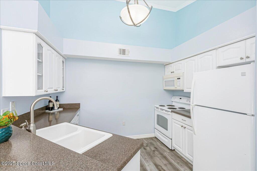 Imagine relaxing in this beautiful 2 bedroom, 2 bathroom condo with screened porch to enjoy the tranquil views of the Indian River. The coastal vibe, vaulted ceiling, top floor location includes updated luxury vinyl plank flooring 2020, modern impact windows & sliding door 2020 and AC 2019. The community offers a pool, spa and fishing dock to watch the rocket launches. Water, trash, basic cable and WIFI are all included in the HOA dues. Conveniently located for an easy commute to KSC, Orlando Airport, attractions and beaches. An application through the condo association is required. Seller is offering $2000 credit towards purchase of new appliances for the kitchen!