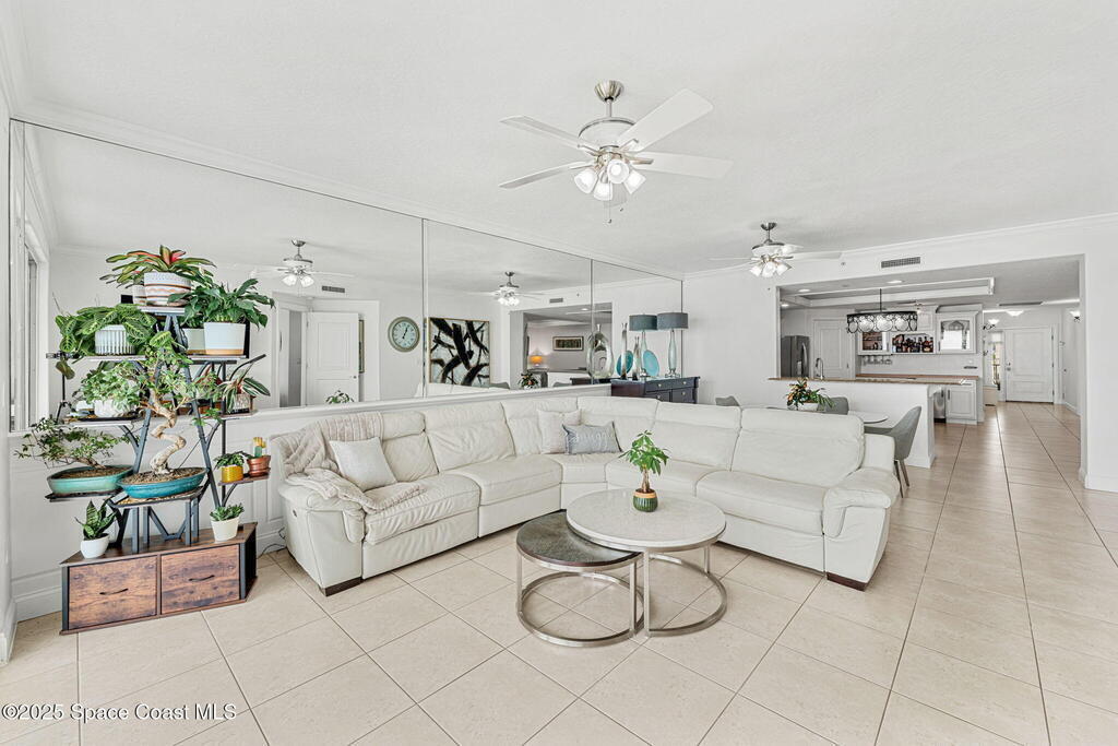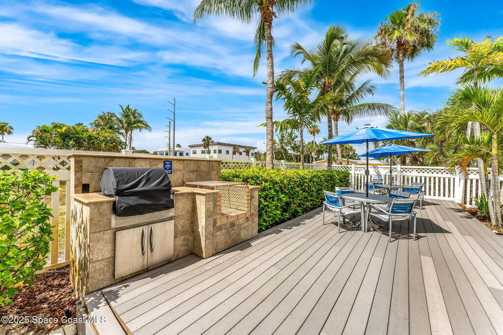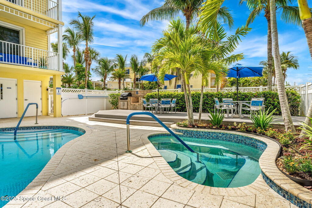 72 Hour Kick-Out Clause In Place. Penthouse living meets coastal cool in this 2006-built oceanfront 3-bedroom, 2-bath residence, perfectly positioned in the coveted SOFA district--just steps from Fifth Avenue's vibrant dining & shopping scene, including Scott's on Fifth, Skewers, Bizarro's, Starbucks, and Publix. Watch launches from the north and view the rockets as they cruise across the skyline in front of you beyond impact-rated windows & 9-foot ceilings, you'll find sleek LVP and ceramic tile flooring, granite kitchen counters, & a thoughtfully updated interior w/ new AC (2020), tankless gas water heater (2023), & a 2021 roof. Owners enjoy two prized garage parking spaces & a suite of amenities: a resurfaced (2021) pool & spa, gas grill and clubhouse for social gatherings, a fully outfitted fitness center w/ brand-new equipment, & climate-controlled storage for added ease. This top-floor retreat offers not just luxury, but a lifestyle--elevated, effortless, & steps from the sand