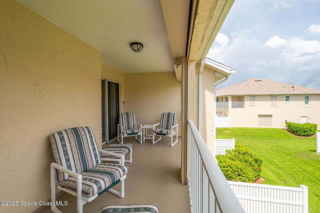 Welcome to Villas by the Sea Townhomes--just steps from the ocean! This beautifully maintained 3-bedroom, 2.5-bath home with attached garage offers spacious beachside living. Ground floor features a bright, tiled kitchen with cheerful cabinetry and an open-concept living and dining area with warm, wood flooring. Sliding glass doors open to a private, paved patio--perfect for relaxing outdoors. You'll also find a convenient half bath, laundry room, storage with central vacuum, and direct access to the garage. Upstairs, the generous owner's suite includes French doors, a walk-in closet, and a luxurious ensuite with double vanity, soaking tub, walk-in shower, and private balcony. Two additional bedrooms with full bath complete the second level. Additional highlights include a welcoming tiled entry, arched doorways, electric hurricane shutters on the balcony & sliders. Embrace effortless coastal living in a home that brings the sea to your doorstep. A/C compressor 2020, A/C handler 2011.