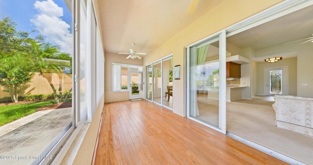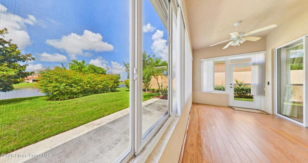 Beautiful home with an incredible view! Enjoy peaceful pond views from this beautifully designed home, where comfort and elegance come together. The renovated kitchen features granite countertops and a stunning backsplash, perfect for everyday living or entertaining. A spacious living room flows into a fabulous Florida room overlooking the water, while the formal dining room--easily used as an office or library--adds versatility. Soaring ceilings throughout enhance the bright, airy feel. The large primary suite offers private slider access to the outdoors and serene pond views. The unique primary bath includes two separate spaces--one with a walk-in shower and the other with a garden tub, creating a spa-like retreat. An indoor laundry room with extra cabinets and a utility sink adds convenience. Located in a gated community where lawn care is included in the HOA, you'll also enjoy a heated pool, walking trails, clubhouse, fitness center, and more!