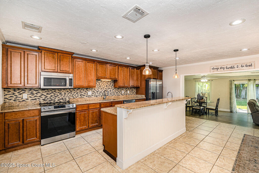 PRICE REDUCTION!!!!!Welcome to this spacious 4- bedroom3-bath home with 2542 sqft of living space, located in a great neighborhood in Merritt Island. The home offers open floors plan with stainless steel finishes, perfect for entertaining. Impact windows, 2023 roof, new ac, wine fridge, plenty of storage with walk in closets, the list goes on, Come check this beauty out!!!!!