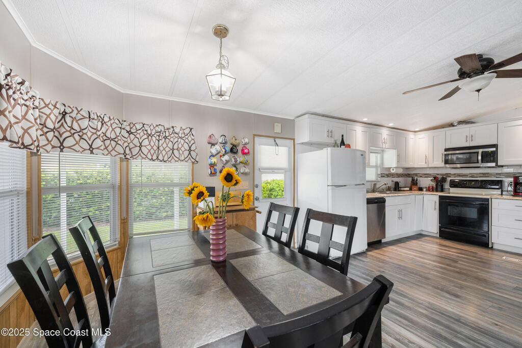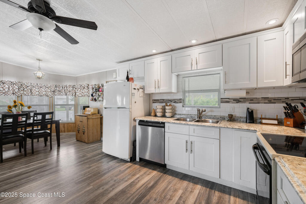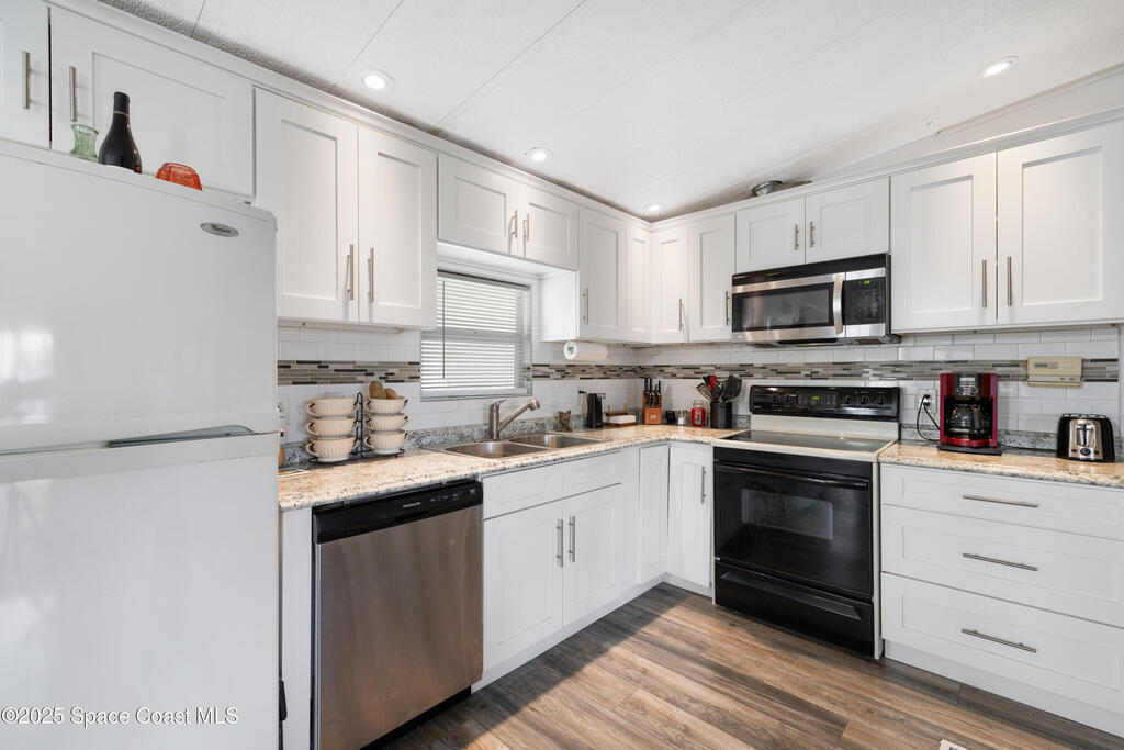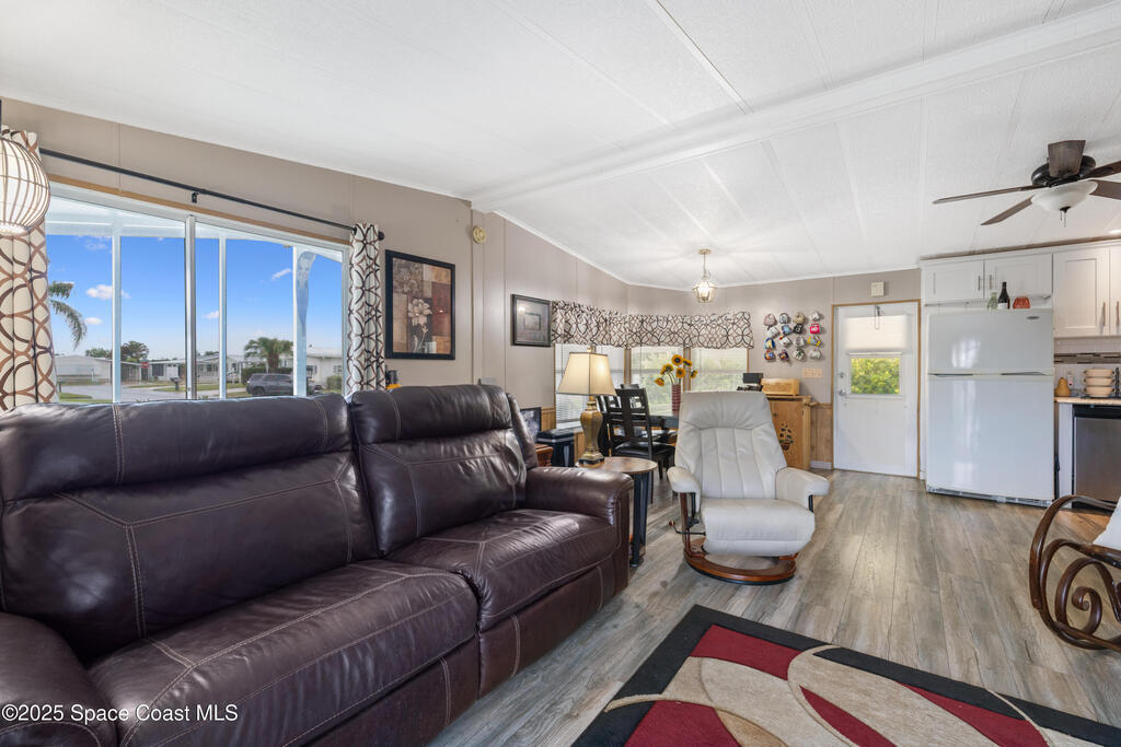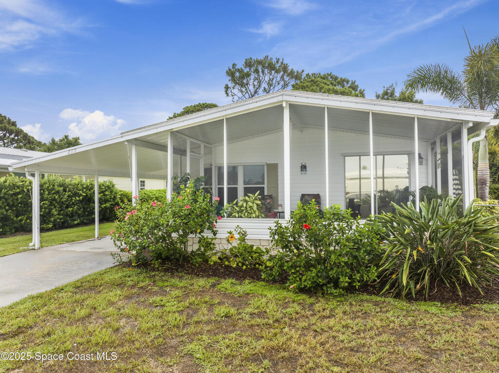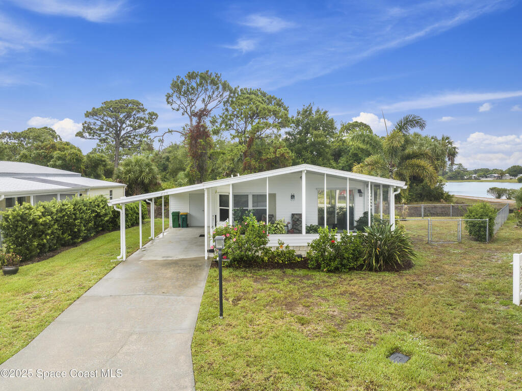 Price reduction, new kitchen appliances, lifetime transferable warranty on the roof and new gutters. Welcome to your dream retreat nestled at the end of a tranquil cul-de-sac in the vibrant Barefoot Bay community. This beautifully updated manufactured home offers a blend of modern comfort and serene outdoor living, with views of the lake and preserve. Step inside and be greeted by an inviting open-concept layout, designed for both relaxation and entertainment. The spacious living area is filled with natural light, highlighting tasteful finishes and contemporary touches throughout.