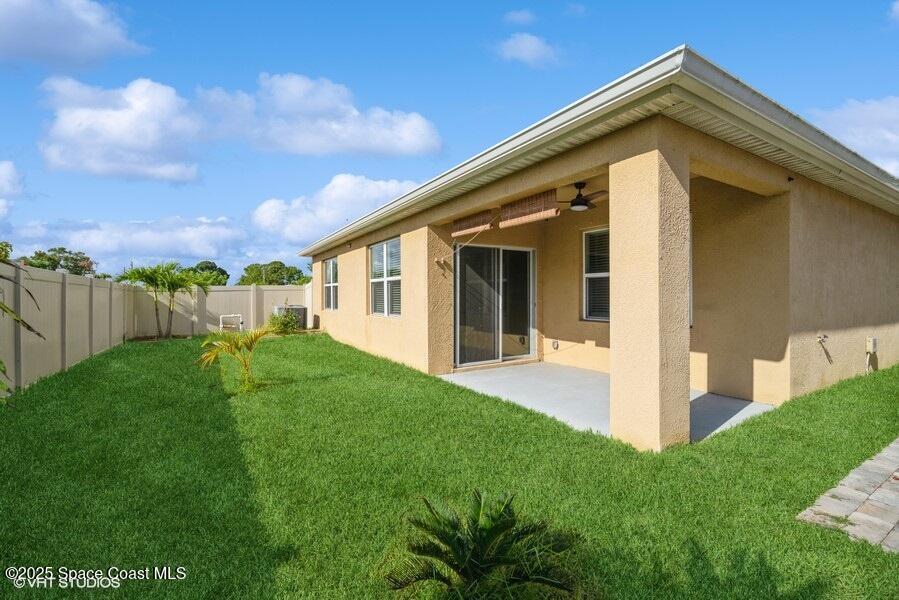 Feels like new! Newer build home with fresh paint, new carpet - barely feels lived in. Stylish 3 bedroom 2 bath split plan with 2 car garage. Open kitchen, stainless steel appliances, inside laundry room. A welcoming entry, spacious corner lot, and fully fenced backyard offer a relaxing outdoor lifestyle. Commuting is a breeze with easy access to I-95 for easy access north or south. Easy commute to all the major employers -L3 Harris, Northrop Grumman, Space X, Blue Origin and more. Looking for dining and shopping - this house is a quick hop to Viera.