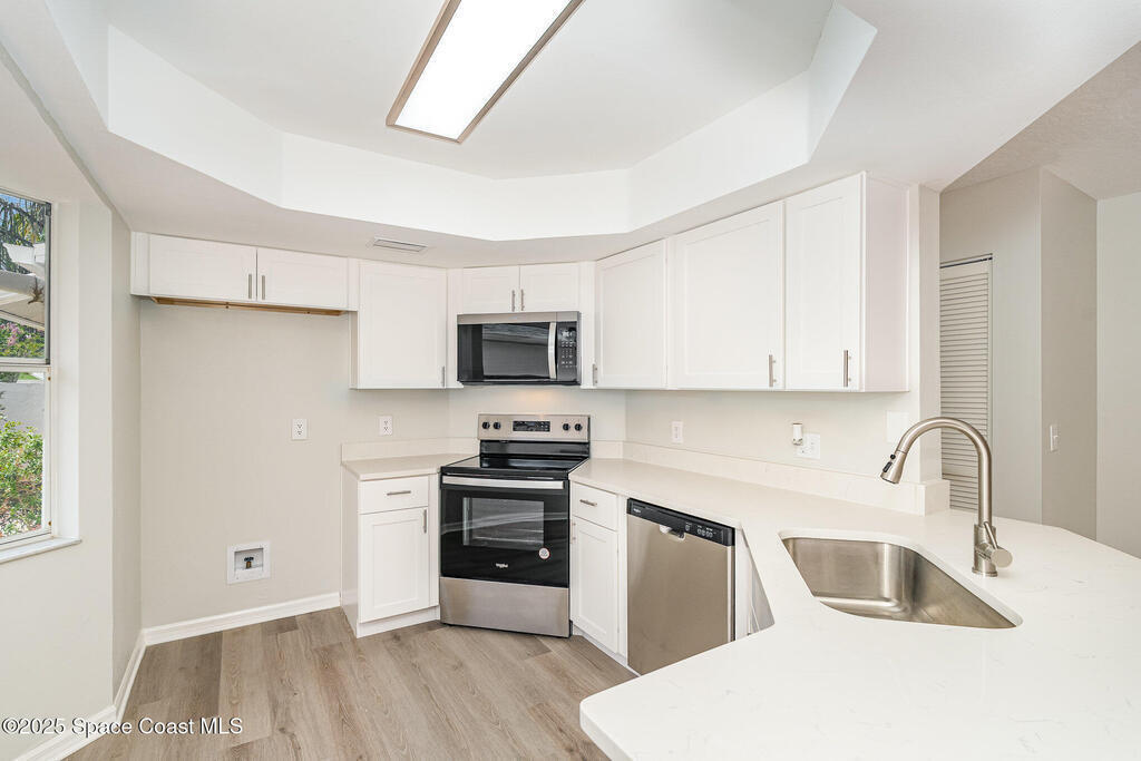 Welcome to the Villas of Suntree, a tranquil and welcoming community. Residents are provided with access to a community pool, clubhouse, and fitness center. The location offers convenient proximity to various golf courses, parks, and recreational amenities. Nearby attractions include the Brevard Zoo, the King Center for the Performing Arts, and a diverse array of shopping options.This lovely townhouse has undergone a complete renovation, including a recent roof, HVAC system, flooring, paint, and much more. It features an ideal split plan with one master en suite bedroom downstairs and a second en suite bedroom upstairs.The primary bedroom is 16 x 18.The property also includes a spacious two-car garage and a wide driveway. This could be your full-time residence or a delightful winter home retreat.Many financing options available! Come see today!