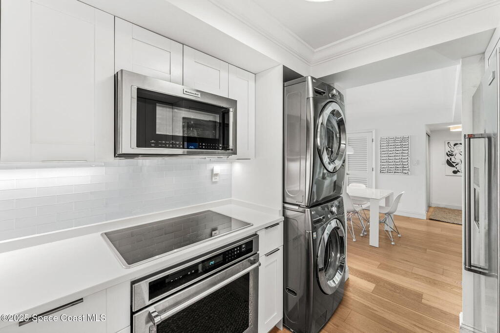 Dishwasher, Electric Range, Electric Water Heater, Microwave, Refrigerator, Washer/Dryer Stacked