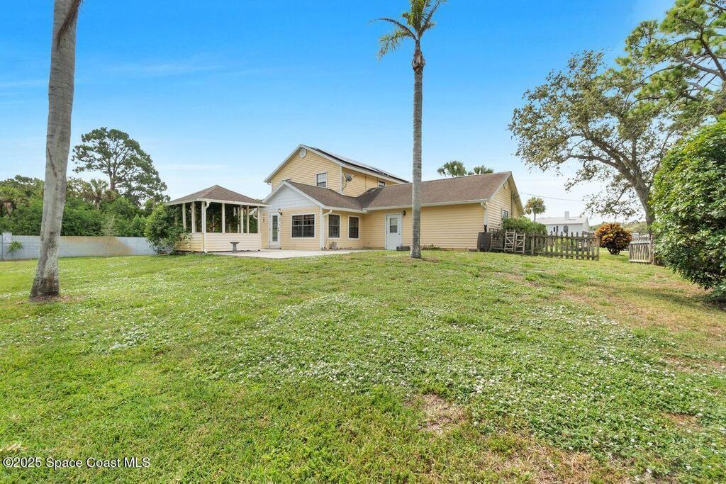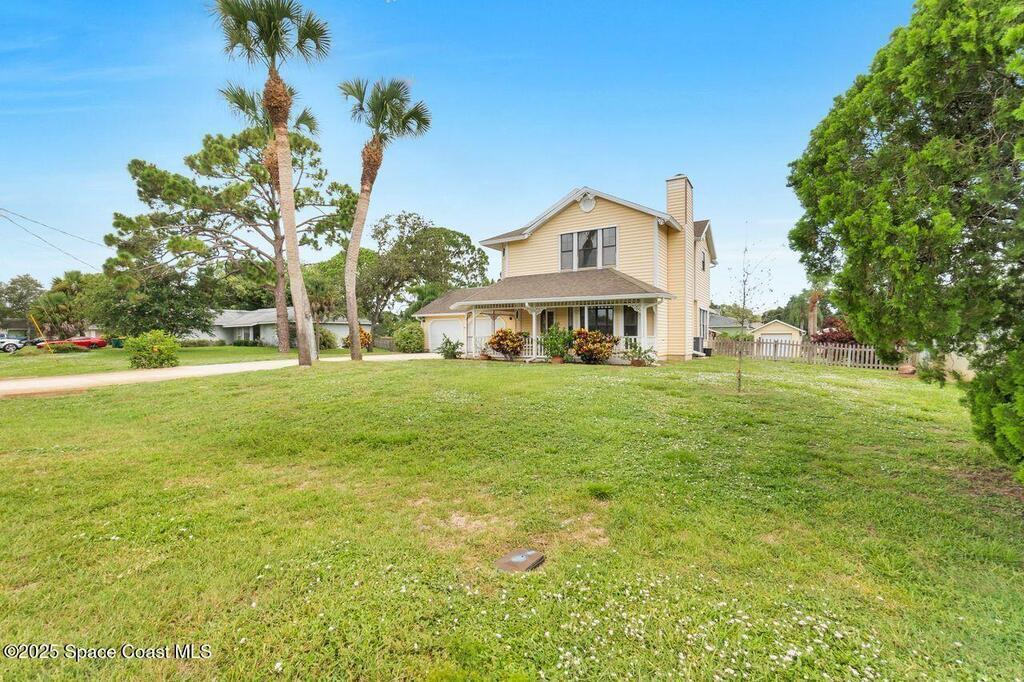 Step into timeless elegance with this Victorian style custom home, nestled in the heart of PSJ. Situated on .51 acre corner lot, this residence combines classic charm and modern comfort. Inside you'll find hardwood floors, abundant natural light and thoughtful architectural details, offering both formal LR/DR, as well as a cozy wood burning fireplace a comfortable family room and bonus room-ideal for home office or playroom. The spacious kitchen is perfect for entertaining, featuring granite counters, solid wood cabinetry and plenty of storage. All bdrms are upstairs and the primary has vaulted ceilings, his/her walk-in closets, while secondary bedrooms offer generous spaces. Enjoy the outdoors from your wrap around porch, or relax in the charming gazebo, overlooking a beautiful backyard. There's a detached one car garage with a whole house generator hookup and whole house SOLAR! This inviting home is in a top rated school district and close to shopping, the beach and the Space Center