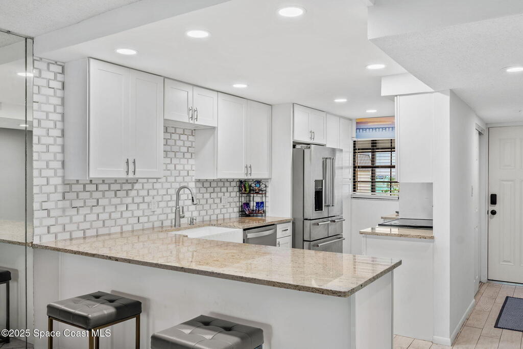 Live where others vacation. This TOP FLOOR (5th-floor) 2-bed, 2-bath condo delivers sweeping Atlantic views and effortless style. The open-concept layout flows into a private balcony -- your front-row seat to sunrise. The kitchen stuns with granite counters, stainless appliances, and a bar perfect for breakfast or cocktails. The oceanview primary suite features a walk-in closet and sleek en-suite bath with walk-in shower. A separate laundry room adds convenience. Amenities include 2 pools, private beach access, tennis, shuffleboard, BBQ area, and open parking. All just steps from Ron Jon Surf Shop, Starbucks, shopping, and restaurants. This isn't just a condo -- it's a lifestyle.