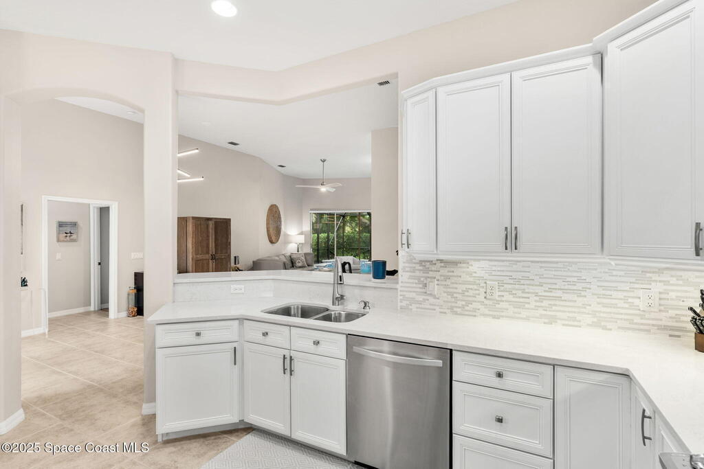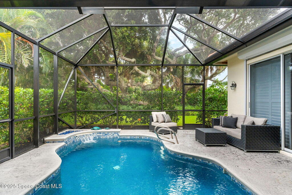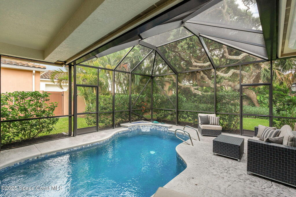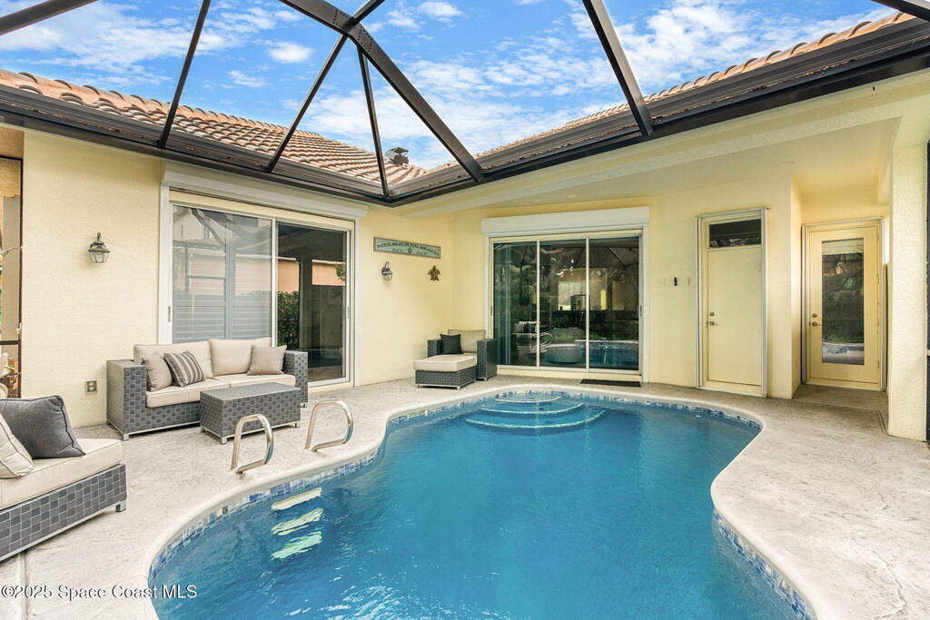 Welcome to your slice of paradise in the prestigious Aquarina community, where luxury meets leisure on Florida's scenic Space Coast. Overlooking the 11th fairway, this 3-bed, 2.5-bath pool home offers elegance, comfort, and resort-style living. Thoughtfully updated interior featuring a modern kitchen with quartz countertops, stainless steel appliances. The open-concept living area flows seamlessly to the outdoors, where sliding glass doors frame views of your private, heated pool and the lush fairway beyond. The primary suite also enjoys tranquil poolside vistas, creating a serene retreat to start and end your day. Meticulously maintained and upgraded for peace of mind, including: Brand new tile roof, Hurricane protection on all openings, New water heater, 2022 AC system and lawn and landscaping included!!