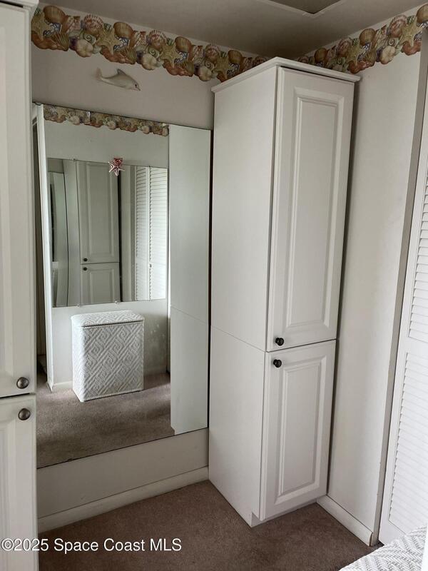 Welcome to Fairways of Brevard, a well-maintained 55+ active community! This 2 bedroom, 2 bath corner unit condo offers 1, 184 sqft with lots of natural light. Master bedroom with ensuite and large closet, big 2nd bedroom with double closets. Tile and carpet throughout. This condo has lots of storage, and free laundry conveniently located on the second floor. The HOA covers trash, sewer, water, and the large swimming pool. The unit comes with one assigned parking space and plenty of guest parking. No dogs are allowed but cats are welcome. Comes with hurricane shutters, roof replaced in 2022 and AC replaced in 2020. Conveniently located in NE Palm Bay, close to great restaurants, beautiful beaches, lovely parks, healthcare and shopping. Easy access to I-95.