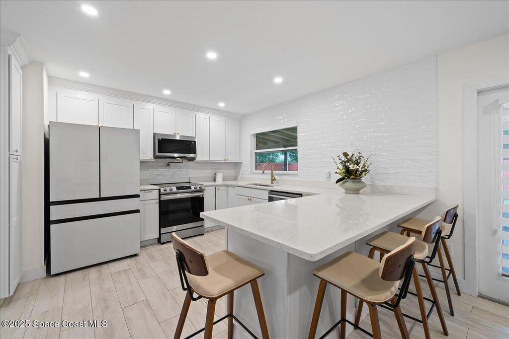 Hidden behind its modest facade, 1238 Port Malabar Blvd NE unveils a jaw-dropping, fully renovated 4-bed luxurious masterpiece--tour it to believe it! New Roof? Yep! Impact Windows? Absolutely! Remodeled Kitchen with a pot filler? Of Course! Remodeled Bathrooms with Marble from floor to ceiling? For Sure! New AC and Water Heater? Absolutely! Furniture Included? You bet! You want an extended driveway, oversized covered back porch, and a fenced backyard? You got it! The upgrades are so many we need three pages to document them all. Upgrades include but not limited to lighting, plumbing, flooring, electrical, duct work, etc etc. AND, furniture is in lNCLUDED. This home is Bursting with personality. Take the home tour challenge and see if you can beat the value! Be sure to check out the VIDEO!