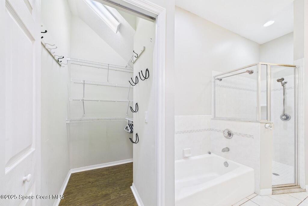 Ceiling Fan(s), Guest Suite, His and Hers Closets, Open Floorplan, Pantry, Primary Bathroom -Tub with Separate Shower, Primary Downstairs, Split Bedrooms, Vaulted Ceiling(s), Walk-In Closet(s)