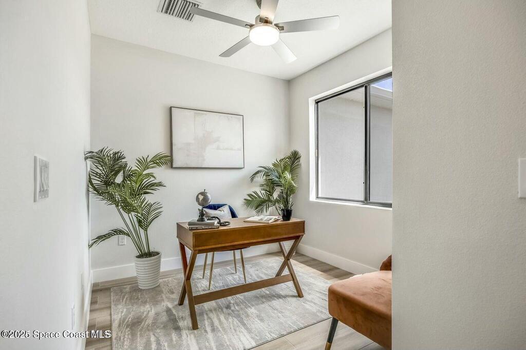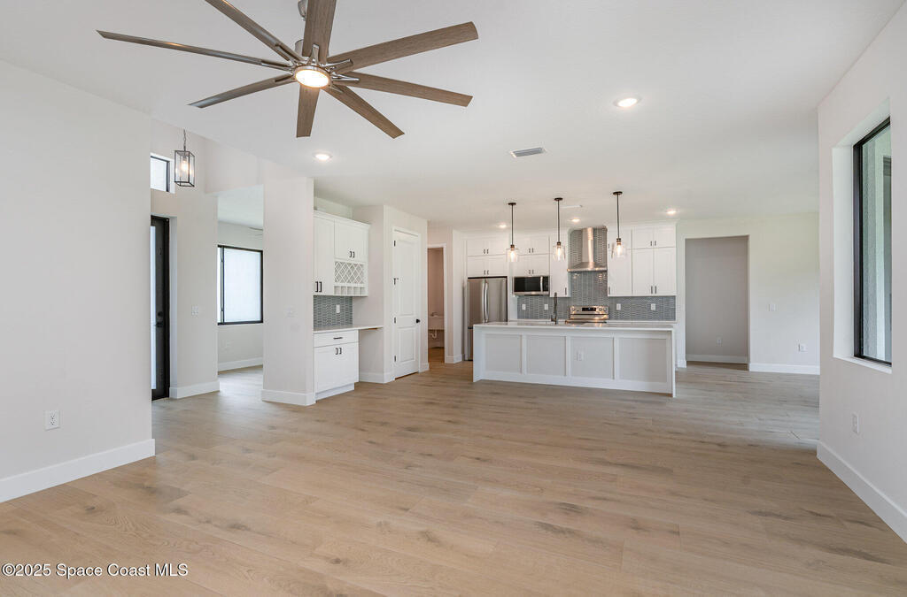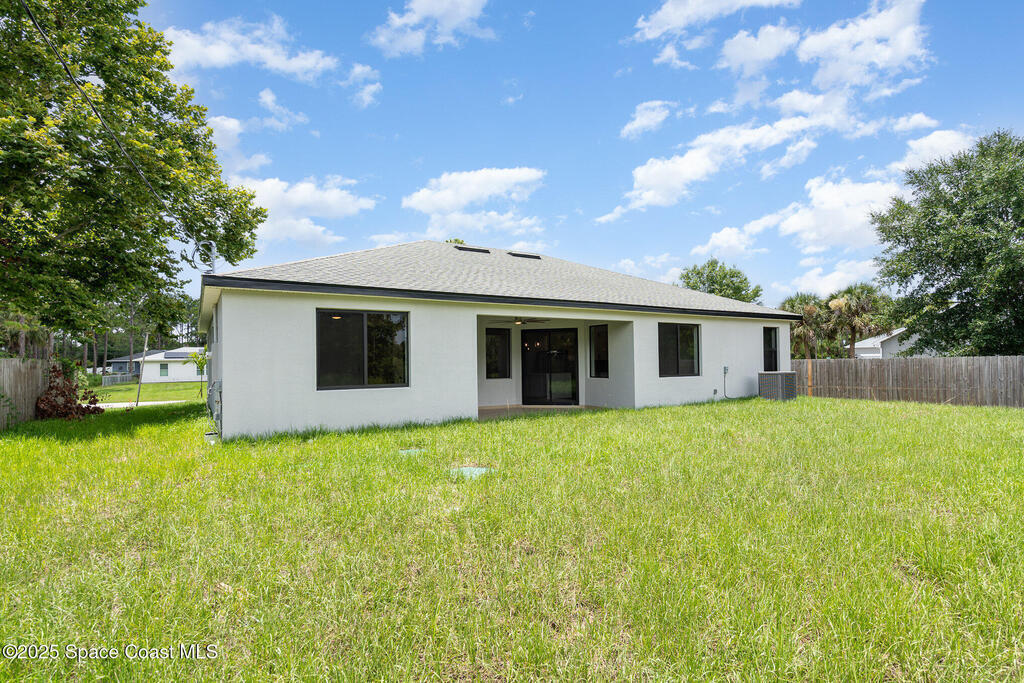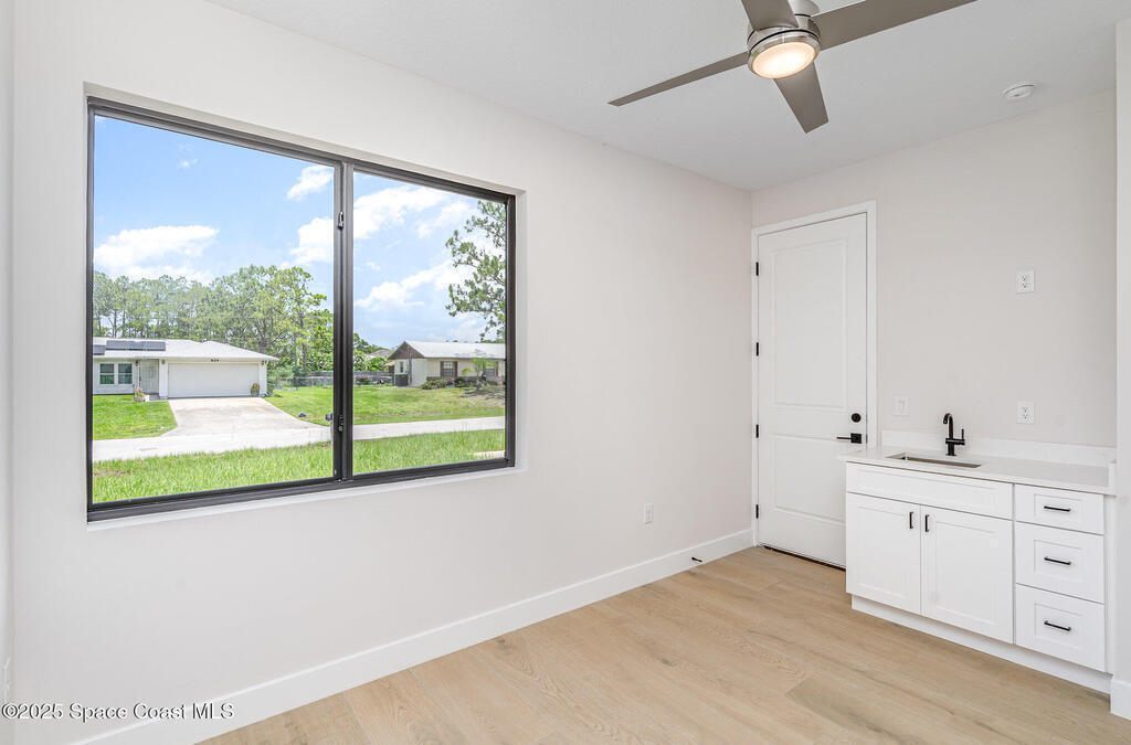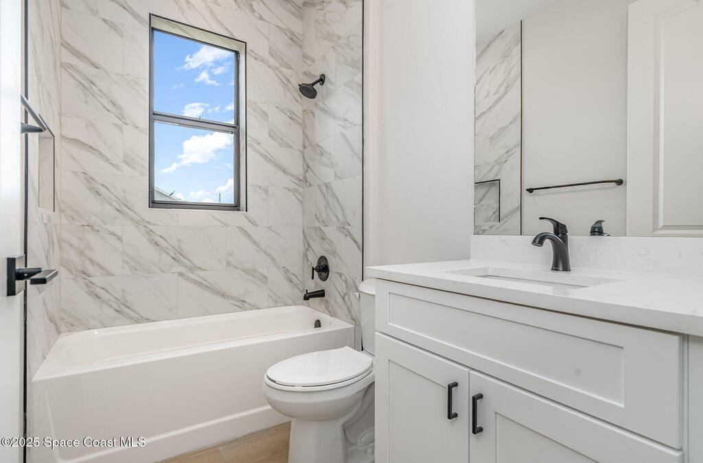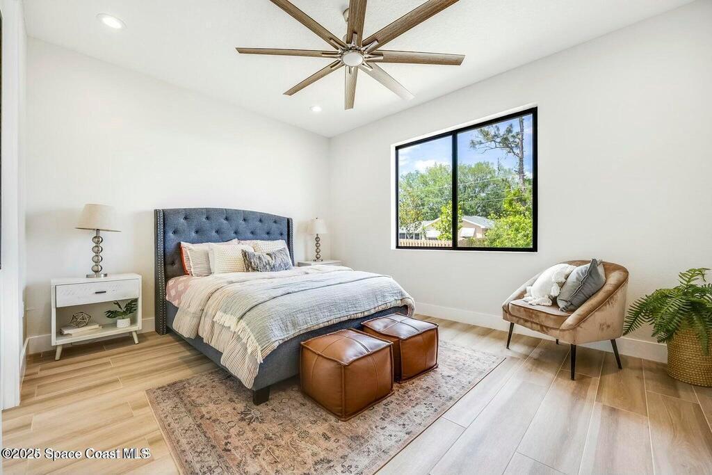SELLER OFFERING $10K IN CONCESSIONS and an upgraded appliance package including washer and dryer. This home is perfect for multigenerational living, featuring a separate entry and private bathroom en suite, ensuring both privacy and comfort. Discover modern luxury living in Palm Bay's desirable Bayside area, close to shopping, dining, and more. This new build features 4 bedrooms, 3 full baths, an office, and 2, 108 sq ft under air. The sleek kitchen boasts a 9'x4' granite island with dual waterfall edges, stainless steel appliances, and custom soft-close cabinets. The open floor plan flows into the dining and living areas, perfect for entertaining. 9.4' ceilings and elegant porcelain tile flooring (no carpet or vinyl) add a spacious feel. The primary suite includes double sinks, a tub, a walk-in shower, and a walk-in closet. Enjoy a covered rear patio with outdoor kitchen utilities ready. This home also includes a 2-car garage, 1-year builder warranty, and 10-year structural warranty.