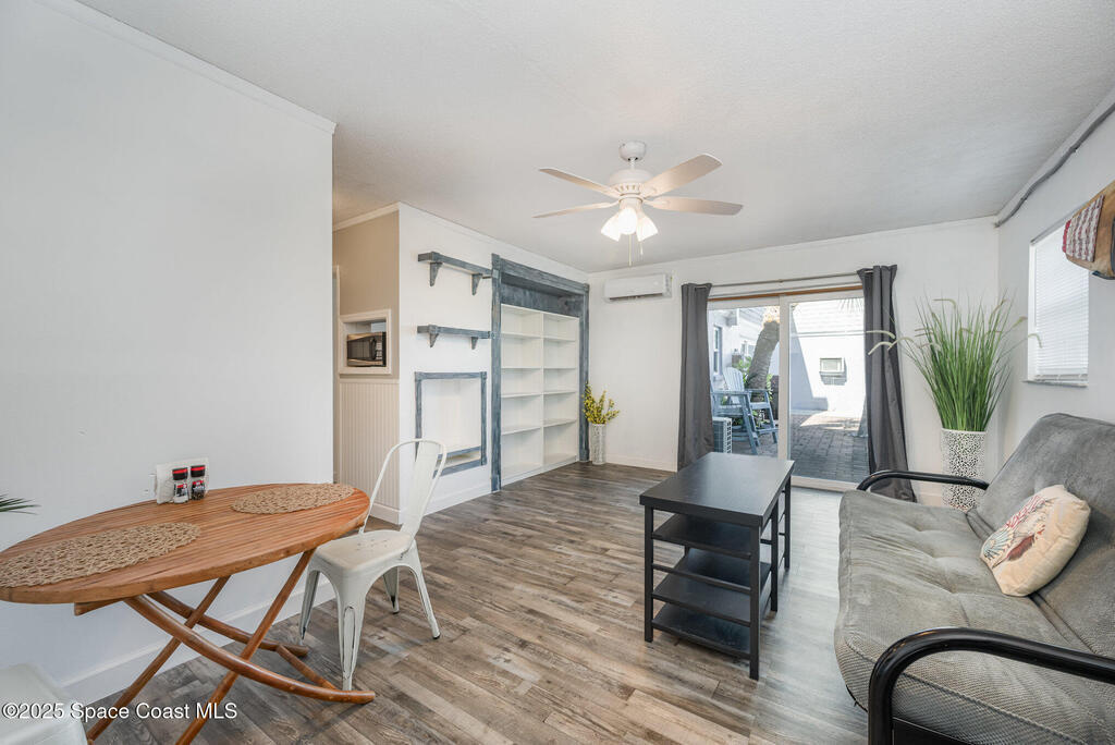 Newly renovated furnished, ground floor studio apartment located in the heart of Cocoa Beach! Waterfront pool, dock, plus easy walkability to the beach, supermarket, and restaurants, what more could you want! Wait....maybe an unobstructed view of the rocket launches from your furnished patio? Well.. you've got that too! This adorable unit has been freshly painted with new bathroom and dressing area, new custom shelves and closet, fans, appliances, A/C, electrical panel, screened slider patio door, plus furnishings, amazing! Perfect for full-time use, as a vacation getaway, or investment; Do not miss this opportunity, some see it today!
