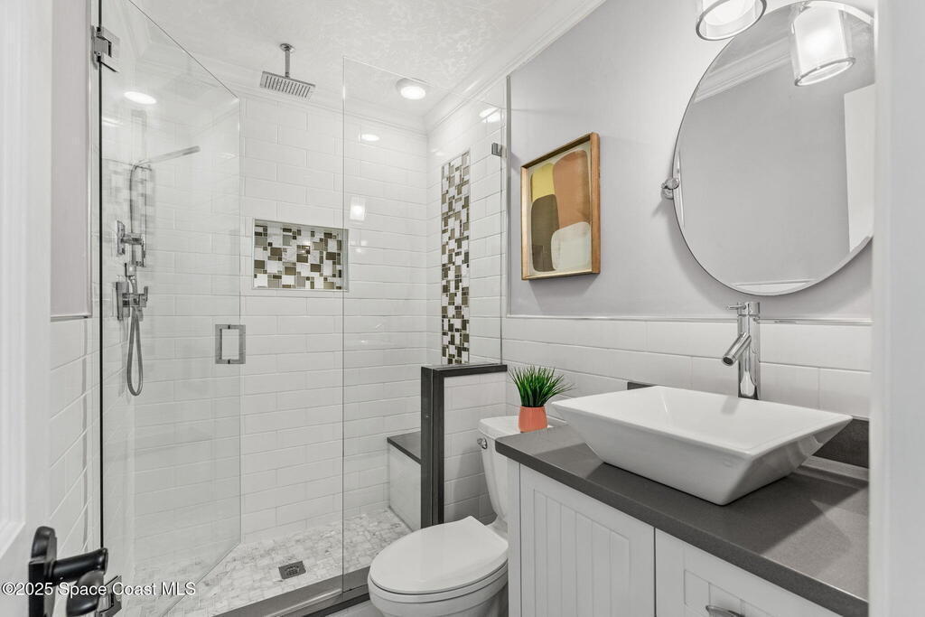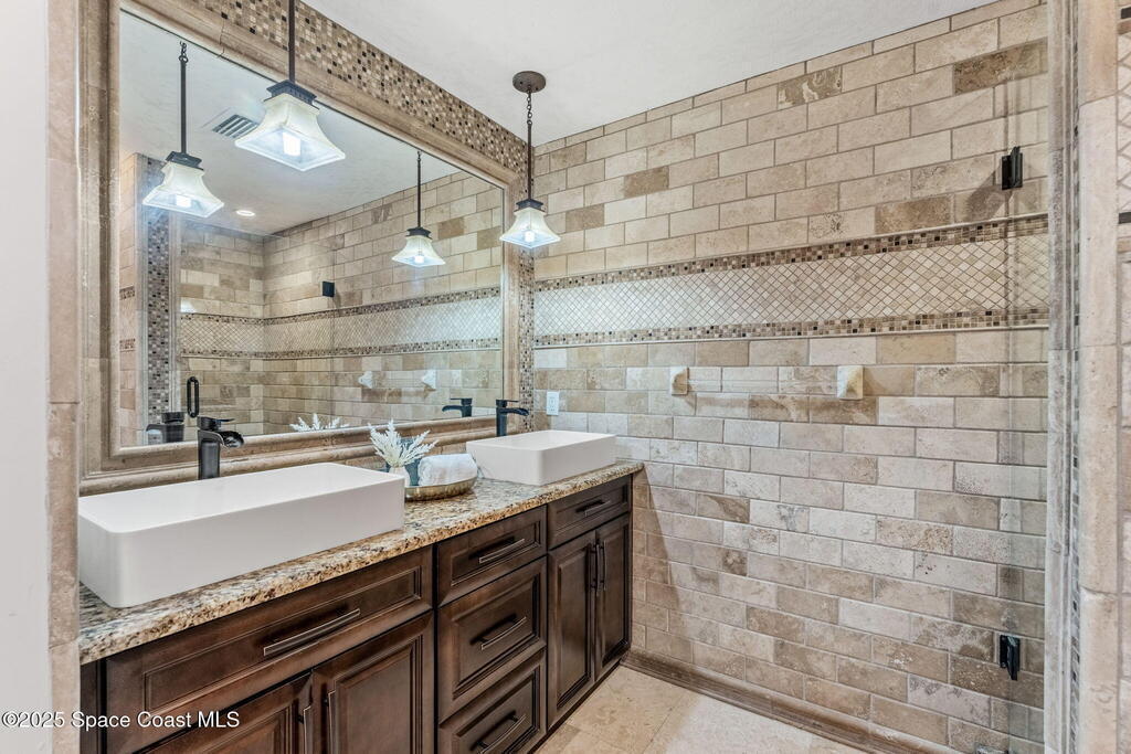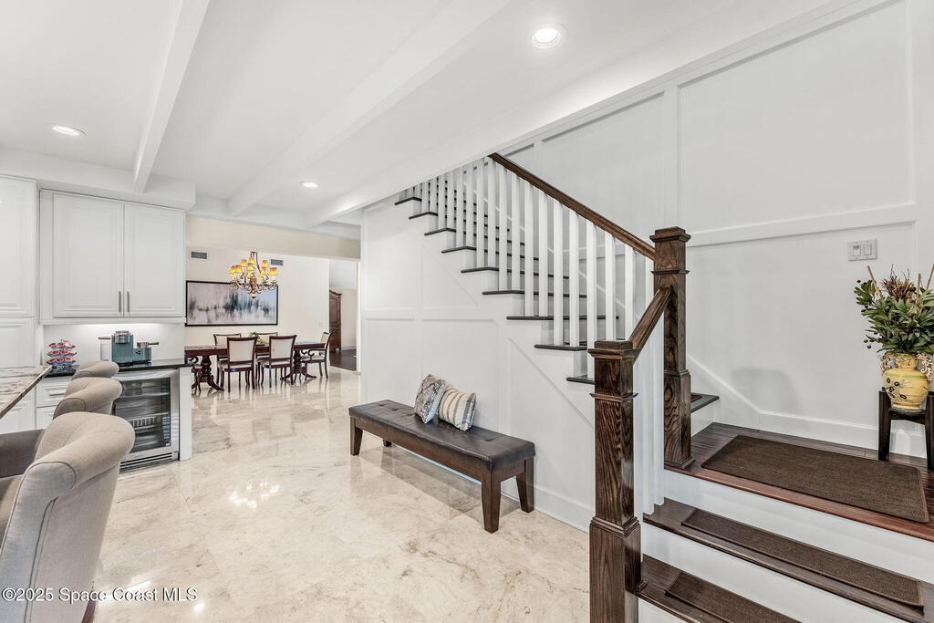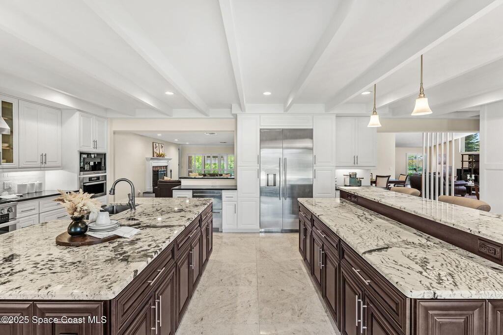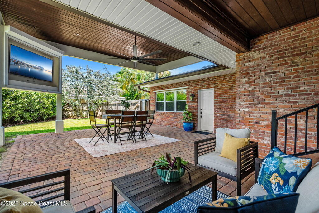 Nestled in Indialantic by the Sea, this stately Chicago brick home welcomes you with a massive Charleston-style front porch and an equally inviting back porch--perfect for sipping sweet tea, gathering with friends, or enjoying the coastal breeze. The back porch offers a large outdoor space for a TV, protected by a hurricane shutter for year-round enjoyment. Inside, this 4BD/3BA home features a spacious bonus room, solid oak and marble tile floors, and a chef's kitchen with double islands, granite countertops, and premium Miele and Thermador appliances. A wood-burning fireplace adds charm, and there's POTENTIAL FOR A POOL ALLOWANCE. Upgrades include a new roof (Feb 2025), impact-rated garage door (Apr 2025), new whole-house ductwork (2023), and Trane HVAC (5-yr warranty). Lifetime cabinet and most window warranties convey. Oversized driveway and RV plug blend practicality with coastal lifestyle. Zoned Indialantic & Hoover.