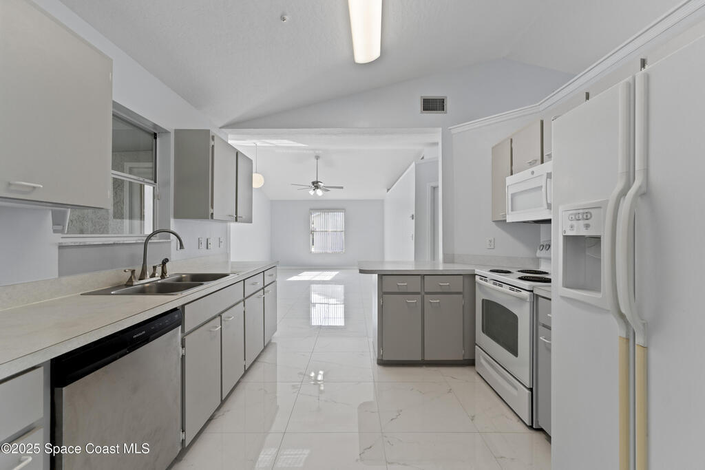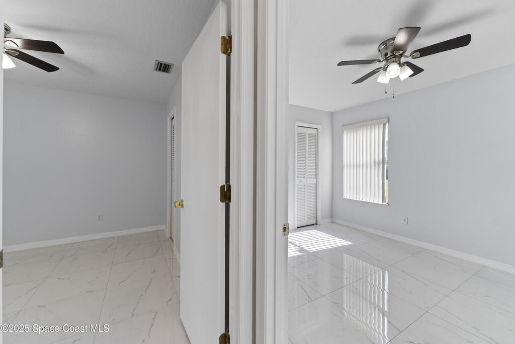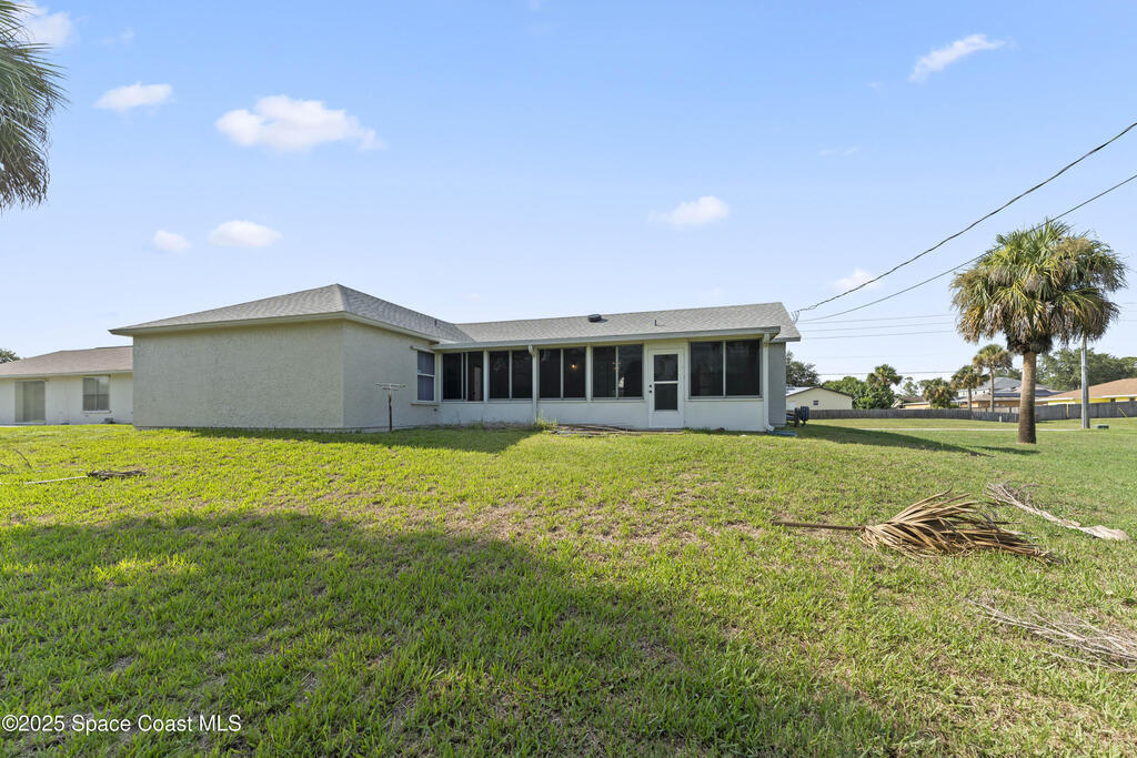 Come take a look at this 3 bedroom 2 bathroom, split floor plan palm bay home. All new tile throughout and fresh paint. Screened in two car garage with workbench for car or handy folks alike. Nice open backyard with no neighbors backing up to it. Close to shopping, I-95, and a local park on same street with playground and basketball courts. Screened in rear porch.